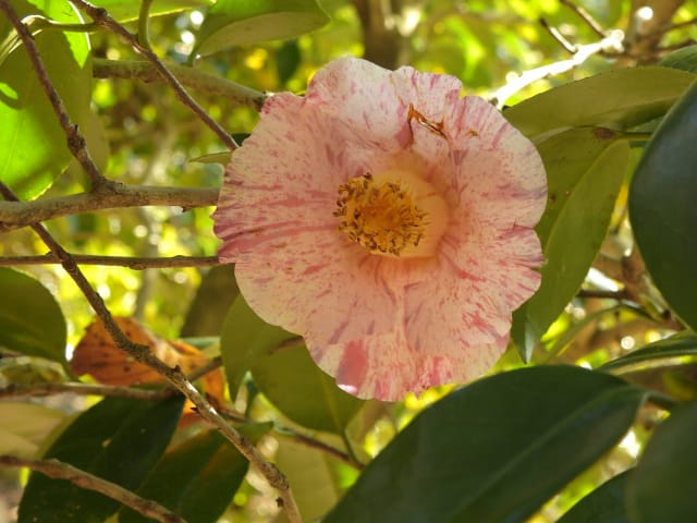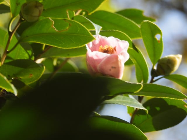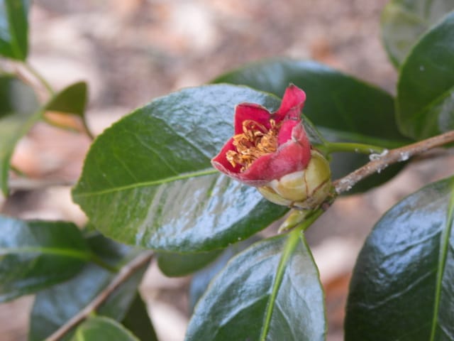 椿園では、前回訪問の11月28日に比し、新規に5種(玉霞・赤西王母・美土野・萩の小綸・曙)が開花し、