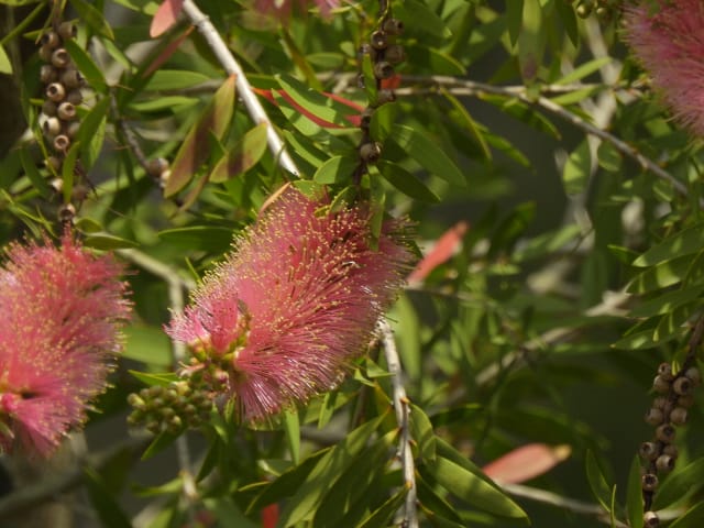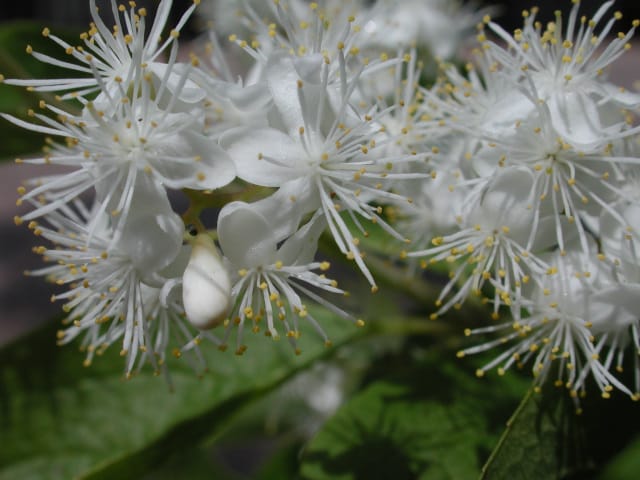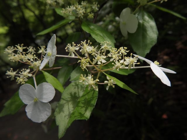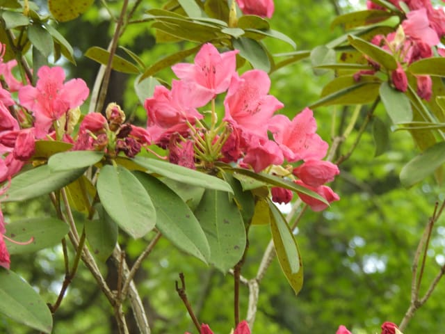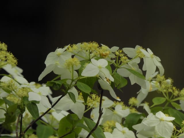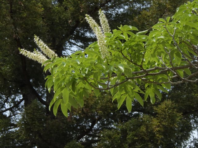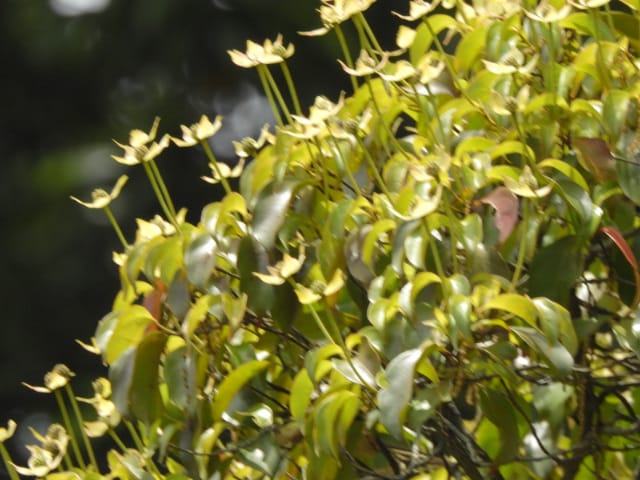 名古屋市東山動植物園温室以外の花&実25/05/15 5月1日に引き続いての訪問で、最新の花マップ発行日に合わせて、訪れました。 動物園正門から入園。 ゾウ舎前では、センダンが見頃でしたが、 ゾウ舎周辺のボダイジュは全て、蕾のままでした。 トラ舎前では、ピラカンサが満開で、遠くから見ると、綿菓子に見えるほど、びっしり咲いていました。 フラミンゴ舎東脇のニオイシュロランが咲き出し見頃でしたが、接写が叶わず、春日井市春日井グリンピアで株が消滅してしまったのが、悔やまれました。 ペリカン舎付近では、クロガネモチはまだ蕾で、ヤマモモの実が大きくなっていました。 ゾアシスイースト前のネグンドカエデ雌株を見てみましたが、雌花は見当たりませんでした。 キリン舎南脇のトチノキは、満開になり、終盤でしたが、 キリン舎東脇のトチノキが開花し、ほぼ満開で見頃でした。 コアラ舎東脇では、カルミアが咲き出し、満開でした。 上池南西脇では、ウメモドキはまだ蕾でしたが、クロミノニシゴリが開花し見頃で接写が叶いました。 上池南では、ナツハゼが咲き出し、接写して来ました。 上池でノハナショウブを探してみましたが見当たらず、あったのは咲き出したキショウブと、前回から開花していた、カキツバタ、でした。 上池門には、最新の花マップが届いておらず、植物園門に行く事となりました。 植物園門の門前では、カナメモチが全開していて、嬉しくなり撮影。 植物園門で、最新の花マップ(5月15日発行。5月11日調査)を入手。 何時もなら、そのまま引き返して、上池門から再入場するのですが、 天気の悪化を恐れて、伊藤圭介の庭、植物会館周辺、を調べてから、上池門に戻ることとしました。 植物会館南では、期待していたヤマグルマ1株が開花し、数花序が見頃でしたが、手の届く位置での開花は無く、接写は、叶いませんでした。グレビレア=アルピナが満開になり、ヒメシャラはまだ蕾でしたが、ウツギが開花し見頃でした。 伊藤圭介の庭では、遮光網に守られたシライトソウが開花し、生垣のシモツケ‘ゴールドフレーム’が咲き出し、ヤブニッケイが蕾を付けていました。 植物会館南脇花壇(以下、「会館脇花壇」と略記)では、白花のスイセンノウが咲き出し、グレビレア‘ロビンゴードン’が見頃で、ビバーナム=ヌドゥムが蕾を付けていました。 上池門に戻り、 脇のエレベータを用いて、体力の温存を図り(少し大げさな表現)、彩景端経由で、植物園に再入園。 バラ園東端では、サンショウバラが1株3輪程咲き残っていました。 アメリカ産植物見本園(以下、「米国産園」と略記)では、4種のカルミアが開花し見頃で、白花のサラサウツギ、ペンステモン=ジギタリス3株、アメリカテマリシモツケ、ムラサキセンダイハギ、が咲き出し、クロバナロウバイが咲き残っていました。 フォークダンス広場(以下、「FD広場」と略記)脇では、グレビレア‘ブロンズランバー’が咲き出し、グレビレア6種(‘ラナ・マリー’・‘ファイヤーワークス’・‘ココナッツアイス’・‘ヒルズジュビリー’・‘ジョンエバンス’・エンドリチェリアナ)が咲き残っていました。 FD広場南では、ドリアンテス=エクスケルサが咲き出し、ドリアンテス=パルメリは、蕾?でした。 FD広場南から眺める、FD広場南脇では、4種のカリステモンが咲き出していました(名札の確認ナシ)。 しゃくなげの森では、シャクナゲは、殆どの株が花期を終えていて、花が残留していたのは、3種(越の炎・太陽・アンナローズホイットニー)だけで、がっかりすると同時に、シャクナゲ探索に費やす時間が省けて、ホッとする気持ちとが、せめぎ合っていました。イワガラミの様子を見遣ると、まだ開花には至っていませんでした。また、「花マップ」に掲載されているトチノキを見てみましたが、花らしいものは見付けられませんでした。 しゃくなげの森南西部では、4種のレプトスペルムム(‘スカーレットドレス’など)が開花していました。 しゃくなげの森小池では、ナガバオモダカが大繁茂し満開で、小池の周囲でドクダミも開花していましたが、期待していたチャショウブは、蕾1輪の確認に留まりました。 花園橋では、橋に絡んだツルアジサイが開花し見頃となっていましたが、同じように橋に絡んだイワガラミは、蕾のままでした。 花園橋北東脇では、欄干の位置まで垂れ下がっているチャンチンモドキは、丁度満開になり、接写も可能でしたが、写真は今一の出来でした。欄干から見下ろした位置にある、ヒイラギズイナは、開花寸前の蕾でした。 ツツジヶ丘南麓では、カンレンボクはまだ蕾すら目立ちませんでしたが、以前、豊田市の愛知県緑化センタのオーストラリア庭園でお馴染みだった、キク科のアークトセカ=カレンデュラが見頃でした。 中国産植物園林(以下、「中国産園」と略記)では、シナトチノキが開花し見頃で、中国ガマズミも開花し見頃でしたが、ハンカチノキは、前回同様、花を付け