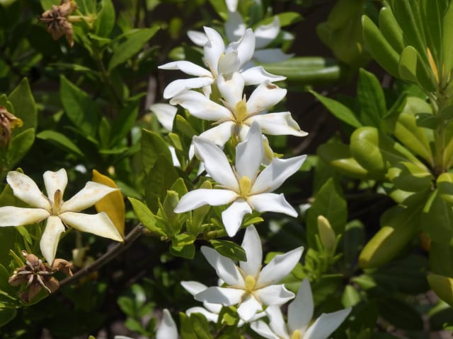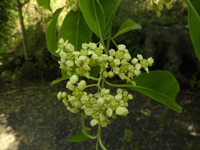 名古屋市東山動植物園温室以外の花&実25/06/17 この日は、最高気温が37℃になる、酷暑予報の日ですが、花マップ発行日の6月15日に一番近くの晴れの日(前日は休園日)と言う事で、訪れました。6月1日に引き続いての訪問です。 動物園正門から入園。 正門東脇の池では、ポンテデリアが咲き残っており、前回訪問時とは異なり、ほぼ無風でしたが、日差しの加減か、写真の出来は今一でした。 ゾウ舎付近では、ネムノキが咲き出していて、ボダイジュは、満開&終盤でした。 トラ舎脇では、オオヤエクチナシが咲き出し、コクチナシが見頃でした。 ゾアシスイースト西脇でも、コクチナシが見頃でしたが、 ゾアシスイースト前のネグンドカエデは、雌花らしきものが枯れ掛けており、今年のものなのか否か、不明でした。 インコ舎前では、トウネズミモチが蕾を付けていて、インコ舎脇では、フェイジョアが開花していました。 上池南では、シャシャンボが開花し、リョウブの蕾が膨らんでおり、 上池では、ノハナショウブ・ハナショウブは、株すら見当たらなかったものの、ポンテデリア・スイレン・ヒロハシャゼンオモダカが、見頃になって来ました。 上池門では、花マップの事を尋ねずにスルーし、植物園門で、最新の花マップ(6月15日発行6月12日調査)を入手。 植物会館南では、期待していたフウランは、蕾すら付けていませんでしたが、ヒメシャラが開花して咲き残り、グレビレア2種(アルピナ・‘プーリンダロイヤルマントル’)が咲き残り、カシワバアジサイも開花していました。 伊藤圭介の庭では、期待していたオトギリソウは見当たりませんでしたが、カンナ科ダンドクが見頃となり、クガイソウが咲き残り、コヤスノキが実を付けていました。 植物会館南脇花壇(以下、「会館脇花壇」と略記)では、セファランサス‘ムーンライトファンタジー’が咲き出し見頃で、ロベリアの立て札がある、和名ルリミゾカクシが開花し満開で、リシマキア=コンゲスティフロラが、咲き残っていました。 植物園門を出て、上池門から、動物園に再入園。 彩景橋経由で、植物園にも再入園。 アメリカ産植物見本園(以下、「米国産園」と略記)では、期待していたスズランノキが開花し見頃で、カシワバアジサイ(3種以上)・ストケシア・ヘメロカリスが咲き出し、クチナシ・ムラサキシキブも開花し終盤でしたが、期待していたキリラ=ラセミフローラは、蕾のままでした。 フォークダンス広場(以下、「FD広場」と略記)脇では、グレビレア4種(‘ラナ・マリー’・‘ココナッツアイス’・エンドリチェリアナ・‘ブロンズランバー’)が咲き残り、メラレウカは、新規に4種(ティミフォーリア?・名札判読不可・‘メディカルティーツリー’・‘ブラックティーツリー’)が咲き出し、2種(‘コットンキャンディー’・‘ホワイトレース’)が元気でした。南西のキョウチクトウは、終盤なのか、元気がありませんでした。 しゃくなげの森では、北端のヘラノキは、まだ蕾でした。 ツツジヶ丘南麓のカンレンボクは、まだ極小の蕾で、風に揺れ、撮影が叶いませんでした。 中国産植物園林(以下、「中国産園」と略記)では、期待していた、中国大花マユミが開花し見頃でしたが、ウオトリギは、パッと目、まだ蕾でしたが、探してみると3輪程が開花しており、接写して来ました。ボダイジュが残留開花しており、ノカンゾウを思わせるヘメロカリス、キンシバイ、が咲き出していました。 花園橋北東脇では、イトランが開花し見頃で、サンゴシトウが見頃になっていましたが、 花園橋北西脇の、イトア=オリエンタリスは、花期を終えた感じでした。 宿根草園では、期待していた、ハゴロモノキが開花し見頃でしたが、スズカケソウは、まだ蕾でした。キリンソウ・ソープワート・ギボウシ・ヘメロカリス・ルドベキア2種(ヒルダ‘グロリオサ・デイジー’・マキシマ)・サルビア=グアラニティカ・ノコギリソウ・カンナ‘磯が浜’・ストケシア‘江戸紫’、が咲き出し、ジギタリス・アカンサス・ハニーサックル‘ゴールドフレーム’・ホタルブクロ‘パープルセンセーション’が咲き残り、レモンマートルが蕾を付けていました。 この日は、暑すぎた為、木陰になっていた宿根草園のベンチで、12時、昼食を食し、暫し休憩。 12時20分、草花散策を再開。 スイレン池では、数種のオンタイスイレンが咲き残っていましたが、撮影をパスしました。 12時半少し前から、約30分間、温室内を散策。 武家屋敷門周辺では、東の合掌線東脇のイワナンテンが咲き出しており(撮影に失敗し、ボケ写真に)、 東脇では、ムクロジの雄花が咲き出していたものの、接写が叶わず、ヤブレガサは、まだ蕾でした。 也有園付近では、北脇でカラシナが咲き出していましたが、東脇のオケラは、まだ蕾すら付けていませんでした。 奥池北脇では、ボダイジュが咲き残っていましたが接写は叶わず、ハンゲショウは、遠景の撮影に留まりました。 奥池北のアジサイ園