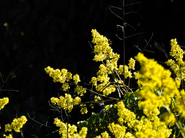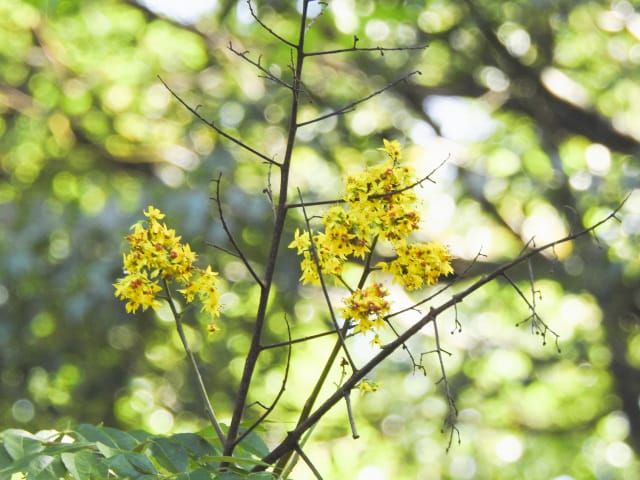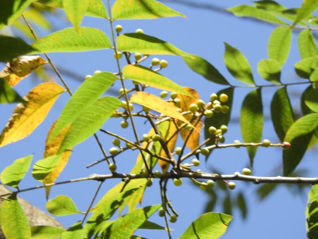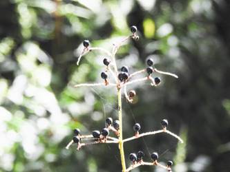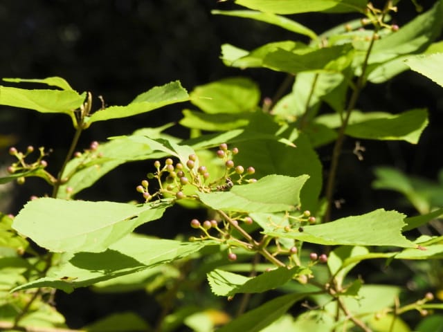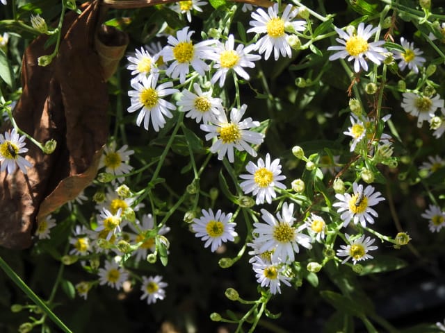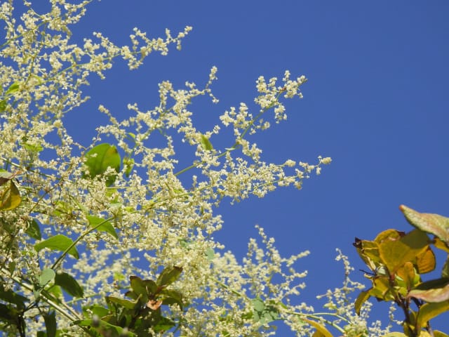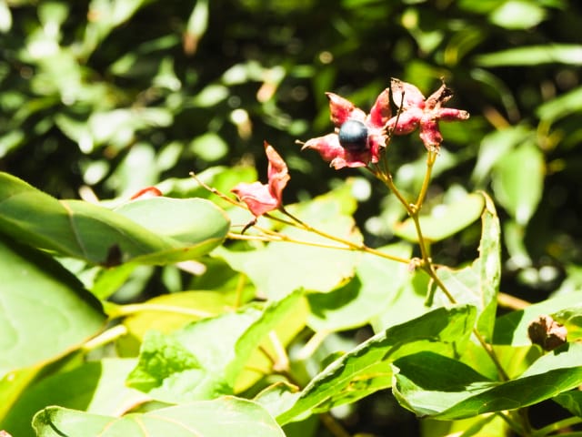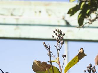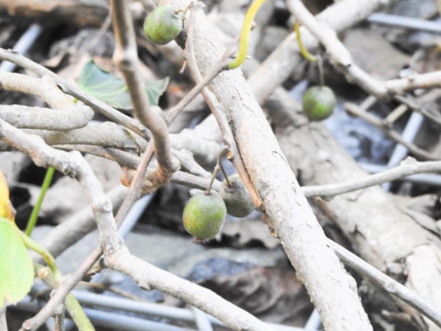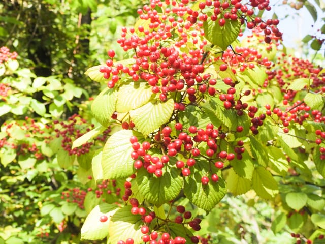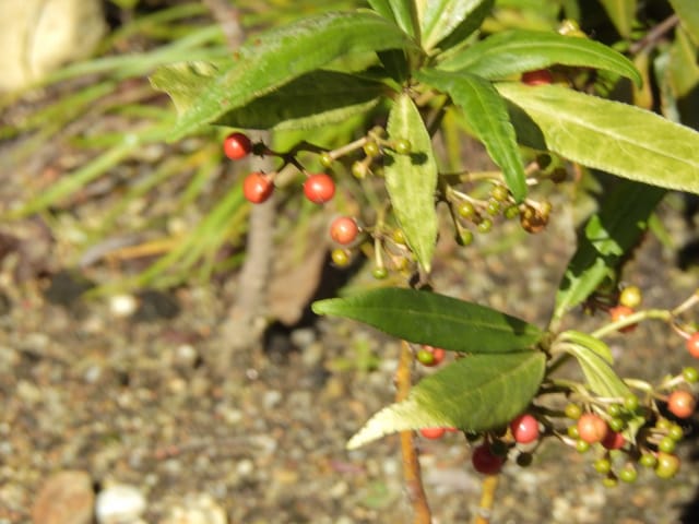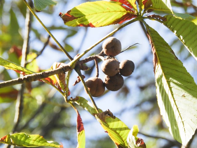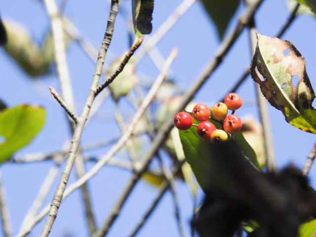 名古屋市東山動植物園温室以外の花&実25/10/17 タイワンモクゲンジ・ホトトギスなどの開花を期待して訪れました。10月2日に引き続いての訪問です。 この日は、この週で1日だけの、晴れ予報の日でした。 動物園正門に到着したのは10時。 ゾウ舎前では、ムクロジの実が、落果せずに残留しており、ピラカンサの実が、綺麗に色付いていました。 キリン舎東脇では、トチノキが実を付けており、 インコ舎前の、トウネズミモチは、蒼いままでした。 上池南西脇のクロミノニシゴリの実は、蒼いながらも、稔り出し、 上池南では、シャシャンボの実が元気で、ナツハゼの実が残留しており、アズキナシの実が色付いてきました。 上池では、スイレンは、花期を終えたものの、ヒロハシャゼンオモダカが元気で、ポンテデリアが咲き残り、 上池北東脇のマメナシの実が稔ってきました。 何時もの習慣で、上池門を出て、植物園門に向かうと、 植物園門南脇柵のカクレミノの実が稔り出しており、 そのまま、植物園門から植物園に入園。 植物会館南では、グレビレア‘プーリンダロイヤルマントル’が咲き残り、ヒメシャラの実が稔っていました。 伊藤圭介の庭では、フヨウとゲンノショウコが元気で、カンナ科ダンドクが咲き残り、シモバシラが終盤でした。 植物会館南脇花壇(以下、「会館脇花壇」と略記)のグレビレア‘ロビンゴードン’が元気でした。 植物園門を出て、上池門から、動物園に再入園。 エレベータ経由で、彩景橋を渡り、植物園にも再入園。 アメリカ産植物見本園西で、サワフタギの返り咲きを期待して見てみると、返り咲きの代わりに実が色付き出し、樹上に絡んだ、ツルドクダミが満開でした。 アメリカ産植物見本園(以下、「米国産園」と略記)では、ノコンギクが咲き出し、クラタエグス=クルスガリ・アロニアの実が色付き出し、サンザシ・アメリカアサガラ・スズランノキの実が残留していましたが、タイサンボクの実はまだ弾けておらず、ムラサキシキブの実の色付きは今一でした。 フォークダンス広場(以下、「FD広場」と略記)脇では、バンクシア=スピヌロサが咲き出し、バンクシア=インテグリフォリアが元気で、メラレウカ‘コットンキャンディー’が満開で、グレビレア‘ブロンズランバー’が咲き残っていました。 南東のタイワンモクゲンジは、開花し満開で、小花が落花し出しており、落花した小花を接写して来ました。 しゃくなげの森では、シャクナゲ‘カロラインアールブロック’が1輪だけ、返り咲きしており、タイサンボクの実も、1つだけ、弾け出していましたが、オオカナメモチの実の様子は見忘れました。 花園橋北東脇では、橋に絡んだオオイタビが刈り取られて実が無くなっていましたが、タイワンフウの実は元気でした。 ツツジヶ丘南麓では、サワフタギの実が、コバルトブルー色に輝き、カンレンボクの実も、黄色く稔っていました。 中国産植物園林(以下、「中国産園」と略記)では、中国ガマズミの実がルビー色に輝き、中国大花マユミの実が弾け出しており、トキワサンザシの実も黄色く色付き、ランシンボク・シナアブラギリ・トチュウの実が元気でした。ウオトリギの実、シナトチノキの実、は、見付けられませんでした。 花園橋北東脇のサンゴシトウは、橋下から見ると、花期を終えた感じでしたが、橋の北側に回り込んでみると、2花序ほどが咲き残っていました。 ガーデンステージ南東脇では、シロダモ雌株が、蕾を付け出していました。 宿根草園では、キダチコンギクが咲き出し、ショウキズイセンが開花し終盤で、コンギクが満開になり、タイワンホトトギスが4株程(花弁の斑が薄い株2株3輪と、花弁の斑が濃い株2株6輪)開花し、シュウメイギクも白花と八重赤花が開花しており、ナガボノワレモコウ?・クルクマ=ペティオラタ・カンナ‘磯が浜’が残留し、群生しているミカエリソウが1つだけ花芽を付け、コムラサキの実が元気でした。 スイレン池では、パラグアイオニバスが3輪全開し、熱帯スイレン・ヒツジグサ?が元気で、温帯スイレンが咲き残っていました。 11時半過ぎ、温室での散策を開始し、12時過ぎに終了。 温室西出口、植物会館北東のアメリカデイゴを見ろと、蕾を付けている感じでした。 最高気温が28℃になる夏の日差しの中、スイレン池南脇の半日蔭のベンチに腰を下ろし、コンビニおにぎりの昼食を済ませました。 温室東出口脇鉢植えのナタマメは、花期を終えていました。 宿根草園北脇のコウヤボウキは、新規花の開花は無く、前回訪問時に見た、「萎れかけの花」1輪が、残留していました。 也有園周辺では、南東脇のボケの実、北脇のカラタチバナの実、が残留しており、東脇の、カリガネソウの花、ヤマコウバシの実、も残留していましたが、北脇畑のゴボウは、相変わらず、葉っぱのみ、でした。 奥池北では、キチジョウソウはまだ花芽を付けておらず、花を期待した、大木のリンボクは、梢辺りを83倍の望遠モードで