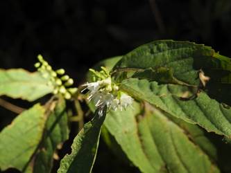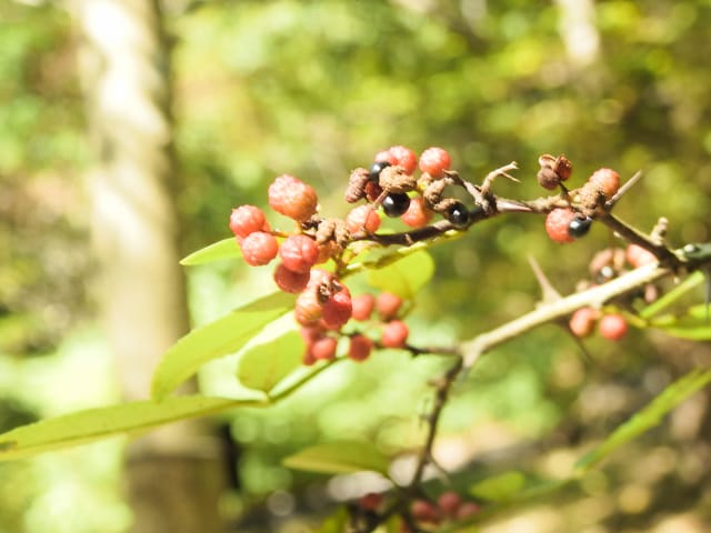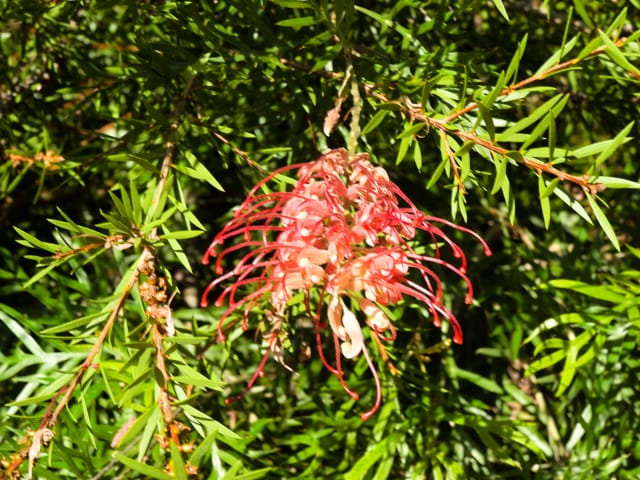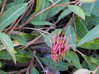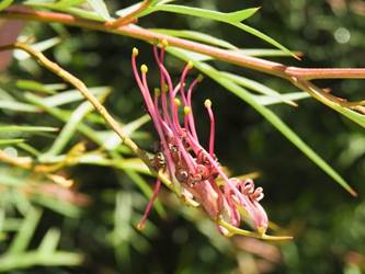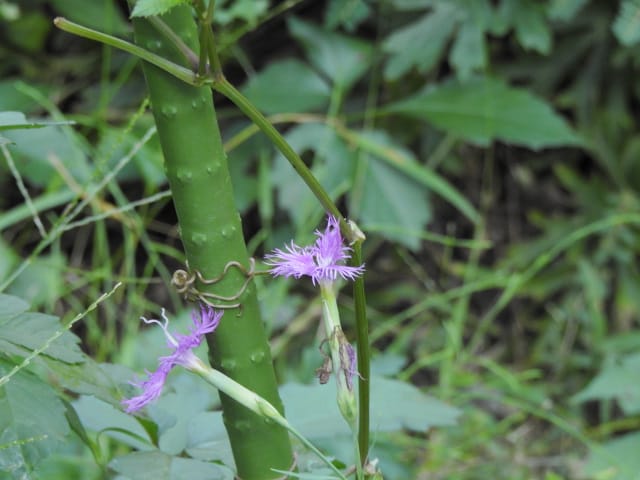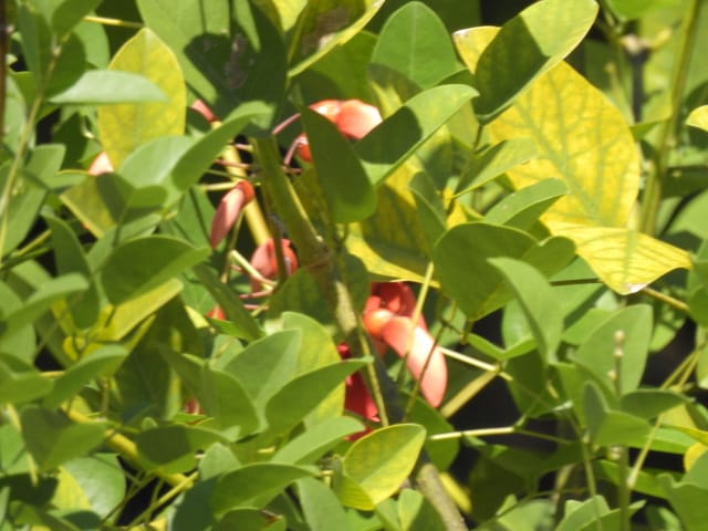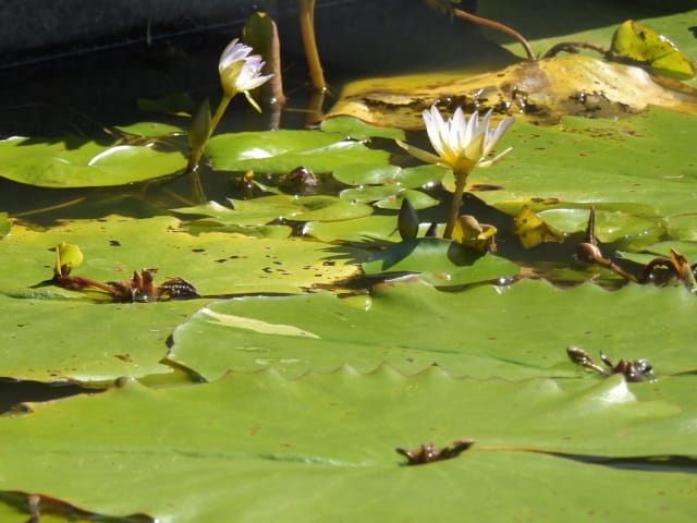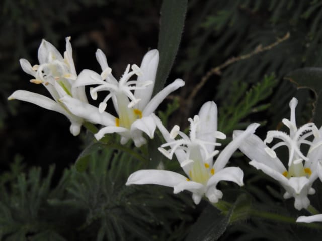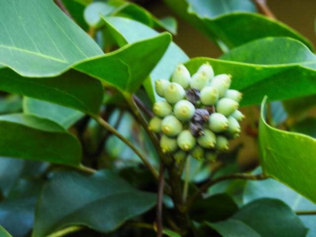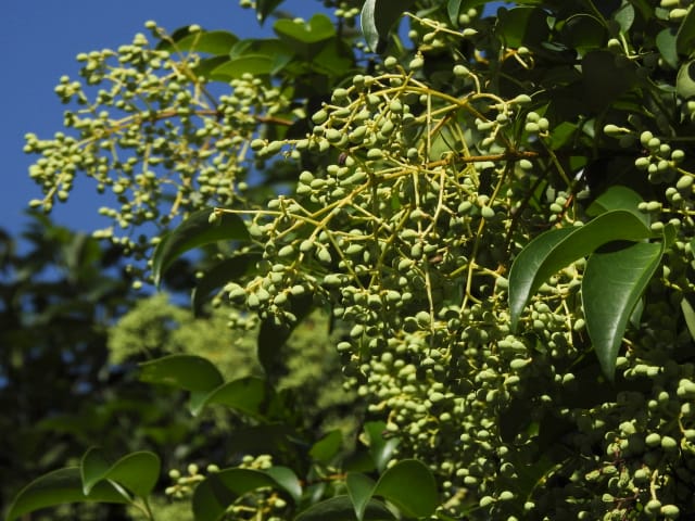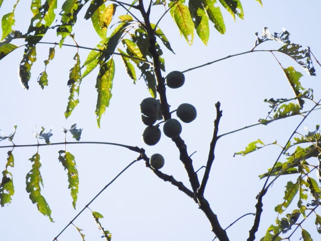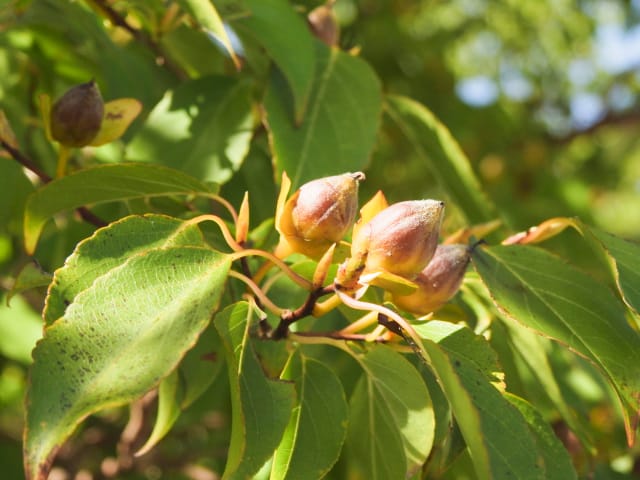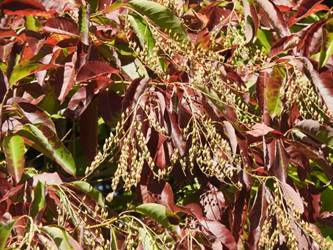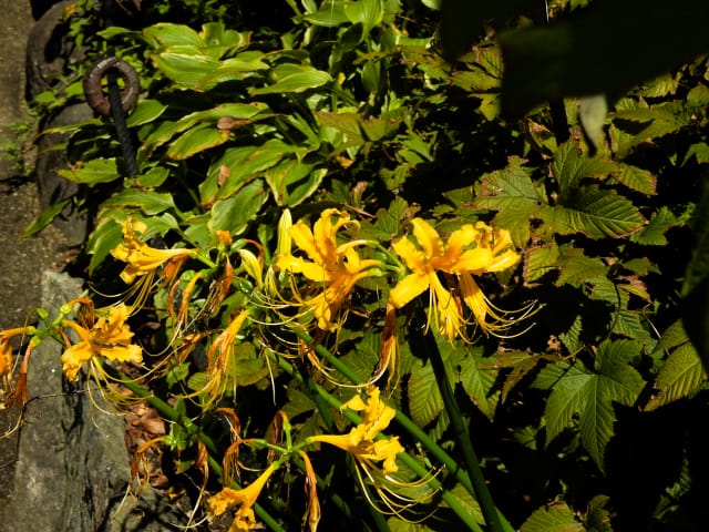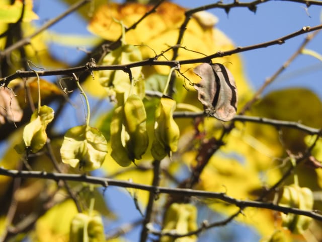 名古屋市東山動植物園温室以外の花&実25/10/17 タイワンモクゲンジ・ホトトギスなどの開花を期待して訪れました。10月2日に引き続いての訪問です。 この日は、この週で1日だけの、晴れ予報の日でした。 動物園正門に到着したのは10時。 ゾウ舎前では、ムクロジの実が、落果せずに残留しており、ピラカンサの実が、綺麗に色付いていました。 キリン舎東脇では、トチノキが実を付けており、 インコ舎前の、トウネズミモチは、蒼いままでした。 上池南西脇のクロミノニシゴリの実は、蒼いながらも、稔り出し、 上池南では、シャシャンボの実が元気で、ナツハゼの実が残留しており、アズキナシの実が色付いてきました。 上池では、スイレンは、花期を終えたものの、ヒロハシャゼンオモダカが元気で、ポンテデリアが咲き残り、 上池北東脇のマメナシの実が稔ってきました。 何時もの習慣で、上池門を出て、植物園門に向かうと、 植物園門南脇柵のカクレミノの実が稔り出しており、 そのまま、植物園門から植物園に入園。 植物会館南では、グレビレア‘プーリンダロイヤルマントル’が咲き残り、ヒメシャラの実が稔っていました。 伊藤圭介の庭では、フヨウとゲンノショウコが元気で、カンナ科ダンドクが咲き残り、シモバシラが終盤でした。 植物会館南脇花壇(以下、「会館脇花壇」と略記)のグレビレア‘ロビンゴードン’が元気でした。 植物園門を出て、上池門から、動物園に再入園。 エレベータ経由で、彩景橋を渡り、植物園にも再入園。 アメリカ産植物見本園西で、サワフタギの返り咲きを期待して見てみると、返り咲きの代わりに実が色付き出し、樹上に絡んだ、ツルドクダミが満開でした。 アメリカ産植物見本園(以下、「米国産園」と略記)では、ノコンギクが咲き出し、クラタエグス=クルスガリ・アロニアの実が色付き出し、サンザシ・アメリカアサガラ・スズランノキの実が残留していましたが、タイサンボクの実はまだ弾けておらず、ムラサキシキブの実の色付きは今一でした。 フォークダンス広場(以下、「FD広場」と略記)脇では、バンクシア=スピヌロサが咲き出し、バンクシア=インテグリフォリアが元気で、メラレウカ‘コットンキャンディー’が満開で、グレビレア‘ブロンズランバー’が咲き残っていました。 南東のタイワンモクゲンジは、開花し満開で、小花が落花し出しており、落花した小花を接写して来ました。 しゃくなげの森では、シャクナゲ‘カロラインアールブロック’が1輪だけ、返り咲きしており、タイサンボクの実も、1つだけ、弾け出していましたが、オオカナメモチの実の様子は見忘れました。 花園橋北東脇では、橋に絡んだオオイタビが刈り取られて実が無くなっていましたが、タイワンフウの実は元気でした。 ツツジヶ丘南麓では、サワフタギの実が、コバルトブルー色に輝き、カンレンボクの実も、黄色く稔っていました。 中国産植物園林(以下、「中国産園」と略記)では、中国ガマズミの実がルビー色に輝き、中国大花マユミの実が弾け出しており、トキワサンザシの実も黄色く色付き、ランシンボク・シナアブラギリ・トチュウの実が元気でした。ウオトリギの実、シナトチノキの実、は、見付けられませんでした。 花園橋北東脇のサンゴシトウは、橋下から見ると、花期を終えた感じでしたが、橋の北側に回り込んでみると、2花序ほどが咲き残っていました。 ガーデンステージ南東脇では、シロダモ雌株が、蕾を付け出していました。 宿根草園では、キダチコンギクが咲き出し、ショウキズイセンが開花し終盤で、コンギクが満開になり、タイワンホトトギスが4株程(花弁の斑が薄い株2株3輪と、花弁の斑が濃い株2株6輪)開花し、シュウメイギクも白花と八重赤花が開花しており、ナガボノワレモコウ?・クルクマ=ペティオラタ・カンナ‘磯が浜’が残留し、群生しているミカエリソウが1つだけ花芽を付け、コムラサキの実が元気でした。 スイレン池では、パラグアイオニバスが3輪全開し、熱帯スイレン・ヒツジグサ?が元気で、温帯スイレンが咲き残っていました。 11時半過ぎ、温室での散策を開始し、12時過ぎに終了。 温室西出口、植物会館北東のアメリカデイゴを見ろと、蕾を付けている感じでした。 最高気温が28℃になる夏の日差しの中、スイレン池南脇の半日蔭のベンチに腰を下ろし、コンビニおにぎりの昼食を済ませました。 温室東出口脇鉢植えのナタマメは、花期を終えていました。 宿根草園北脇のコウヤボウキは、新規花の開花は無く、前回訪問時に見た、「萎れかけの花」1輪が、残留していました。 也有園周辺では、南東脇のボケの実、北脇のカラタチバナの実、が残留しており、東脇の、カリガネソウの花、ヤマコウバシの実、も残留していましたが、北脇畑のゴボウは、相変わらず、葉っぱのみ、でした。 奥池北では、キチジョウソウはまだ花芽を付けておらず、花を期待した、大木のリンボクは、梢辺りを83倍の望遠モードで