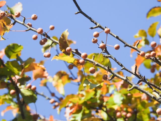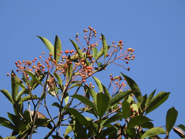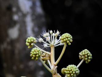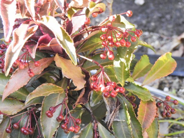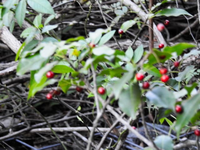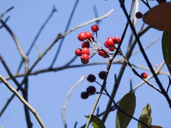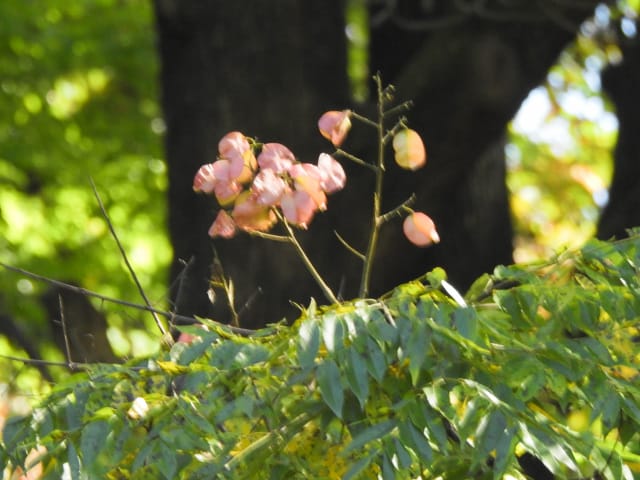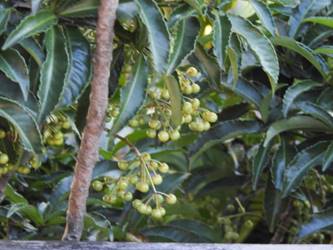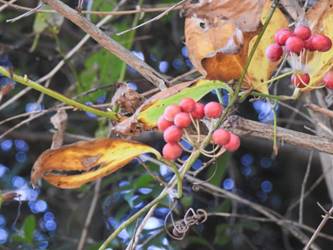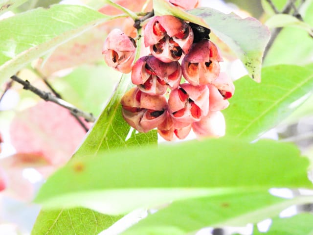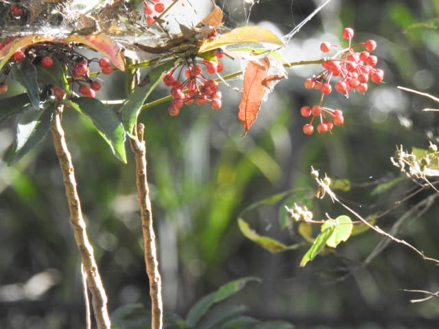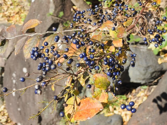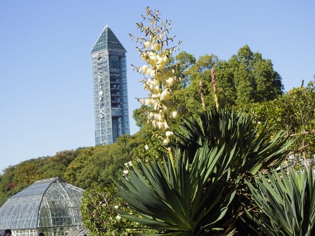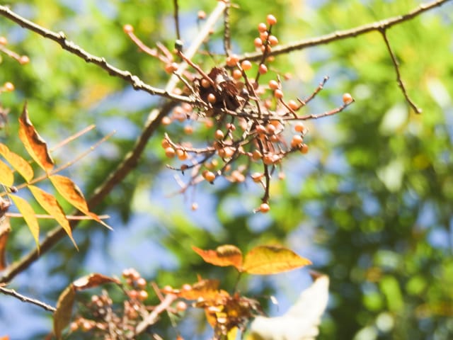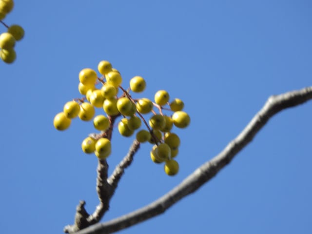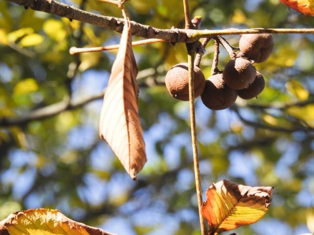 名古屋市東山動植物園温室以外の花&実25/11/15 11月2日に引き続いての訪問です。 この日は、少し風はあるものの、快晴の小春日和で、土曜日ともあって、多くの訪問者で賑わっていました。 動物園正門に到着したのは10時。 ゾウ舎前では、ムクロジの実が黄色く色付き出していました。そして、前回訪問時に見掛けた、葉っぱを落とした樹にある、まん丸のムクロジに似た実、の正体を探ってみると、「センダン」なる札がぶら下がっていました。すぐ脇のセンダンの樹には、葉っぱが茂り、お馴染みの、少し小ぶりの長楕円形の実がついており、納得がいかない私は、色んな状態のセンダンの実を観察する事としました。 トラ舎前では、早々にセンダンが実を垂らしており、ハクサンボクの実が残留していました。 キリン舎東脇のトチノキの実は無事で、 インコ舎前のツネズミモチの実が、黒熟していました。 上池南西脇のクロミノニシゴリの実が黒く熟し大きくなっており、 上池南では、シャシャンボの実が黒熟し、ナツハゼの実が残留していて、アズキナシの実も、熟してきました。 上池北東脇のマメナシの実も、見頃になっていました。 いつもの癖で、 上池門を出て、植物園門に向かうと、 植物園門前のカナメモチの実が色付き出していて、植物園門南脇柵のカクレミノの実が黒熟していました。 植物園門から、植物園に入園。 伊藤圭介の庭では、アゼトウナが20輪程、群生開花していましたが、フヨウは、花期を終えていました。ゲンノショウコの神輿が見頃となっていましたが、コクサギの実は、赤く色付けど、弾けていませんでした。 カンナ科ダンドクは、3花序ほどが咲き残っていました。 植物会館南のヒメシャラの実が稔り、 植物会館南脇鉢植えのダイヤモンドリリーは、開花数が2株に増え、 植物会館南脇花壇のグレビレア‘ロビンゴードン’が咲き残っていました。 植物園門を出て、上池門から、動物園に再入園。 エレベータ経由で彩景橋を渡ると、橋の東脇のヤツデが蕾を付けていました。 植物園にも再入園。 アメリカ産植物見本園(以下、「米国産園」と略記)では、クラタエグス=クルスガリ・アロニアの実、が見頃を維持し、クチナシの実が色付いており、アメリカアサガラの実、スズランノキの実、タイサンボクの弾けた実、が残留し、北端のムラサキシキブの実が綺麗でした。 フォークダンス広場(以下、「FD広場」と略記)脇では、バンクシア=スピヌロサが満開になり、バンクシア=インテグリフォリア・メラレウカ2種(ティミフォーリア・‘コットンキャンディ’)が咲き残っていました。 南西では、キョウチクトウが沢山の実を付け、 南東では、タイワンモクゲンジの実が稔ってきました。 しゃくなげの森では、ヤマコウバシの実が稔り、オオカナメモチの実が色付き始めていました。 ツツジヶ丘南麓では、トウネズミモチの実が稔り、サワフタギの実は、紺色の輝きを維持しており、ピラカンサ・カンレンボクの実も、見頃を継続させていました。 中国産植物園林(以下、「中国産園」と略記)では、シナトチノキの実は落果してしまったようで、見当たりませんでしたが、ヒイラギモチの実が綺麗に色付き、中国ガマズミ実が赤い輝きを保ち、中国大花マユミの全ての実が弾け、見頃でした。ランシンボク(カイノキ)の実が稔り、ボダイジュ・シナアブラギリの枯れた実が残留しており、トキワサンザシの実も残留していました。オオカナメモチの実が赤く色付き、マンリョウの実も、赤くなっていました。シャクナゲモドキの蕾が赤く輝き、来春の開花を待ち侘びている感じでした。 竹林脇のマンリョウの実も、色付き始めていました。 花園橋北東脇のサンゴシトウの名残花が開花しており、 花園橋北西脇では、東山スカイタワーと比肩するように、アツバキミガヨランが開花し、そびえ立っていました。 ガーデンステージ南東脇の、期待していたシロダモ雌株が咲き出し見頃で、赤く熟した実も見つかりました。 宿根草園では、ハナイソギクが2株開花し満開で、ライオンノミミが、2花序だけですが咲き出していました。コムラサキの実が輝きを保っており、シュウメイギク(白・八重赤)・タイワンホトトギス2種が残留し、期待していたミカエリソウは、最終盤でした。コンギクが満開で、名前の如く紺色の花に変貌しており、ツワブキ・ノコンギク?が見頃で、ヘディキウム=グリフィシアナム・カンナ2種(‘磯が浜’・‘マホーク’)が咲き残り、パンパグラスの穂も残留していました。 スイレン池では、熱帯スイレンが終盤でした。 12時少し前、スイレン池南脇のベンチに腰掛けて、コンビニおにぎりの昼食を食し、 12時過ぎから、12時半過ぎに渡り、温室内を散策しました。 宿根草園北脇では、コバノガマズミの実が残留し、コウヤボウキが満開&終盤でした。 武家屋敷門付近では、 南のモミジ紅葉が綺麗で、南東脇のヤツデの小花が数輪咲き出していました。 南脇のサンシュユの実