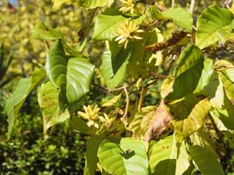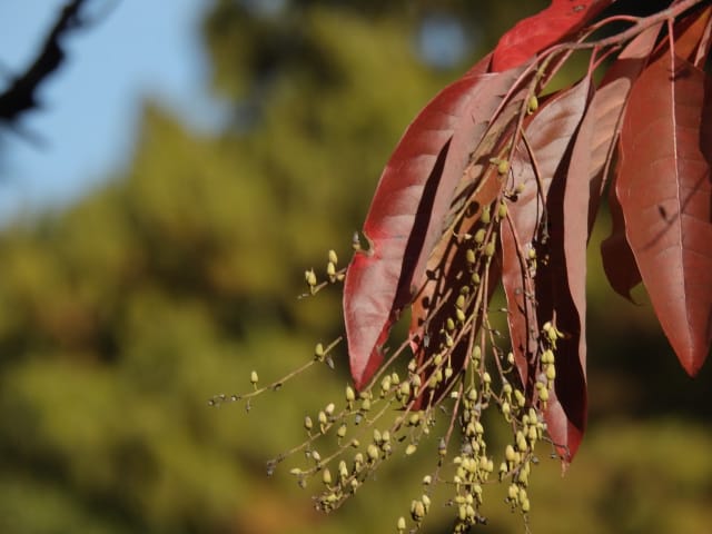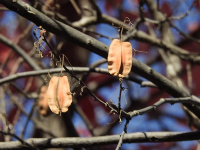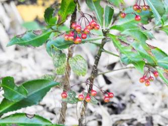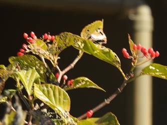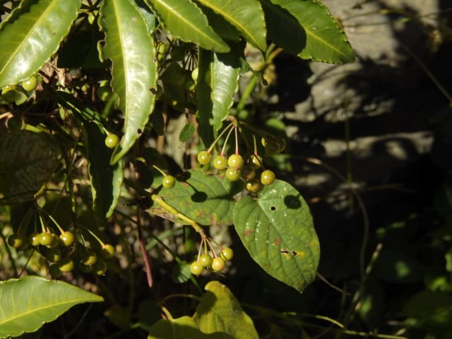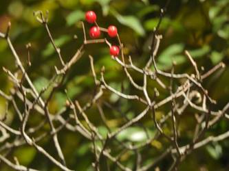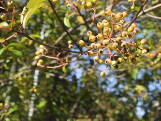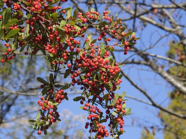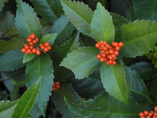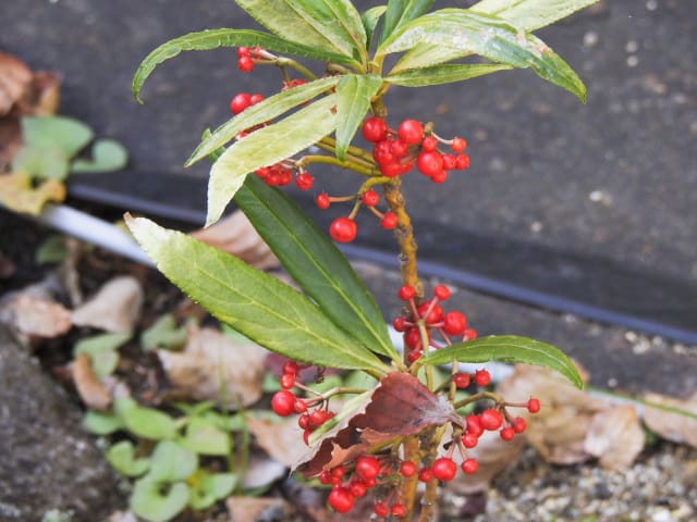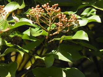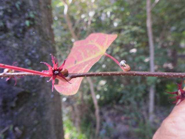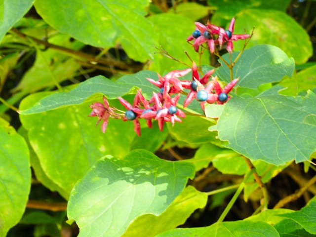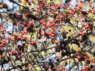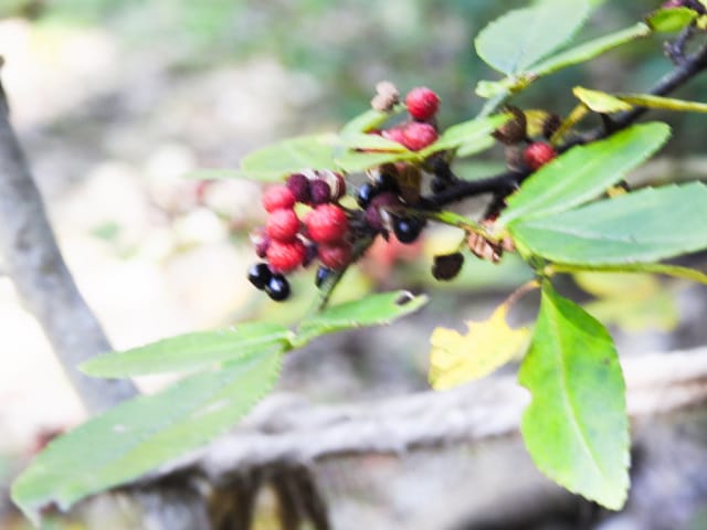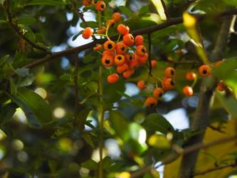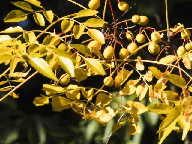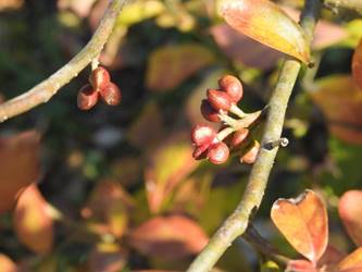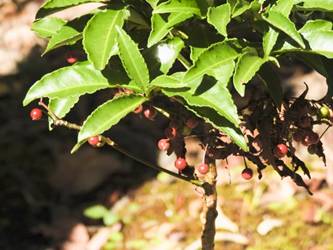 名古屋市東山動植物園温室以外の花&実25/11/15 11月2日に引き続いての訪問です。 この日は、少し風はあるものの、快晴の小春日和で、土曜日ともあって、多くの訪問者で賑わっていました。 動物園正門に到着したのは10時。 ゾウ舎前では、ムクロジの実が黄色く色付き出していました。そして、前回訪問時に見掛けた、葉っぱを落とした樹にある、まん丸のムクロジに似た実、の正体を探ってみると、「センダン」なる札がぶら下がっていました。すぐ脇のセンダンの樹には、葉っぱが茂り、お馴染みの、少し小ぶりの長楕円形の実がついており、納得がいかない私は、色んな状態のセンダンの実を観察する事としました。 トラ舎前では、早々にセンダンが実を垂らしており、ハクサンボクの実が残留していました。 キリン舎東脇のトチノキの実は無事で、 インコ舎前のツネズミモチの実が、黒熟していました。 上池南西脇のクロミノニシゴリの実が黒く熟し大きくなっており、 上池南では、シャシャンボの実が黒熟し、ナツハゼの実が残留していて、アズキナシの実も、熟してきました。 上池北東脇のマメナシの実も、見頃になっていました。 いつもの癖で、 上池門を出て、植物園門に向かうと、 植物園門前のカナメモチの実が色付き出していて、植物園門南脇柵のカクレミノの実が黒熟していました。 植物園門から、植物園に入園。 伊藤圭介の庭では、アゼトウナが20輪程、群生開花していましたが、フヨウは、花期を終えていました。ゲンノショウコの神輿が見頃となっていましたが、コクサギの実は、赤く色付けど、弾けていませんでした。 カンナ科ダンドクは、3花序ほどが咲き残っていました。 植物会館南のヒメシャラの実が稔り、 植物会館南脇鉢植えのダイヤモンドリリーは、開花数が2株に増え、 植物会館南脇花壇のグレビレア‘ロビンゴードン’が咲き残っていました。 植物園門を出て、上池門から、動物園に再入園。 エレベータ経由で彩景橋を渡ると、橋の東脇のヤツデが蕾を付けていました。 植物園にも再入園。 アメリカ産植物見本園(以下、「米国産園」と略記)では、クラタエグス=クルスガリ・アロニアの実、が見頃を維持し、クチナシの実が色付いており、アメリカアサガラの実、スズランノキの実、タイサンボクの弾けた実、が残留し、北端のムラサキシキブの実が綺麗でした。 フォークダンス広場(以下、「FD広場」と略記)脇では、バンクシア=スピヌロサが満開になり、バンクシア=インテグリフォリア・メラレウカ2種(ティミフォーリア・‘コットンキャンディ’)が咲き残っていました。 南西では、キョウチクトウが沢山の実を付け、 南東では、タイワンモクゲンジの実が稔ってきました。 しゃくなげの森では、ヤマコウバシの実が稔り、オオカナメモチの実が色付き始めていました。 ツツジヶ丘南麓では、トウネズミモチの実が稔り、サワフタギの実は、紺色の輝きを維持しており、ピラカンサ・カンレンボクの実も、見頃を継続させていました。 中国産植物園林(以下、「中国産園」と略記)では、シナトチノキの実は落果してしまったようで、見当たりませんでしたが、ヒイラギモチの実が綺麗に色付き、中国ガマズミ実が赤い輝きを保ち、中国大花マユミの全ての実が弾け、見頃でした。ランシンボク(カイノキ)の実が稔り、ボダイジュ・シナアブラギリの枯れた実が残留しており、トキワサンザシの実も残留していました。オオカナメモチの実が赤く色付き、マンリョウの実も、赤くなっていました。シャクナゲモドキの蕾が赤く輝き、来春の開花を待ち侘びている感じでした。 竹林脇のマンリョウの実も、色付き始めていました。 花園橋北東脇のサンゴシトウの名残花が開花しており、 花園橋北西脇では、東山スカイタワーと比肩するように、アツバキミガヨランが開花し、そびえ立っていました。 ガーデンステージ南東脇の、期待していたシロダモ雌株が咲き出し見頃で、赤く熟した実も見つかりました。 宿根草園では、ハナイソギクが2株開花し満開で、ライオンノミミが、2花序だけですが咲き出していました。コムラサキの実が輝きを保っており、シュウメイギク(白・八重赤)・タイワンホトトギス2種が残留し、期待していたミカエリソウは、最終盤でした。コンギクが満開で、名前の如く紺色の花に変貌しており、ツワブキ・ノコンギク?が見頃で、ヘディキウム=グリフィシアナム・カンナ2種(‘磯が浜’・‘マホーク’)が咲き残り、パンパグラスの穂も残留していました。 スイレン池では、熱帯スイレンが終盤でした。 12時少し前、スイレン池南脇のベンチに腰掛けて、コンビニおにぎりの昼食を食し、 12時過ぎから、12時半過ぎに渡り、温室内を散策しました。 宿根草園北脇では、コバノガマズミの実が残留し、コウヤボウキが満開&終盤でした。 武家屋敷門付近では、 南のモミジ紅葉が綺麗で、南東脇のヤツデの小花が数輪咲き出していました。 南脇のサンシュユの実