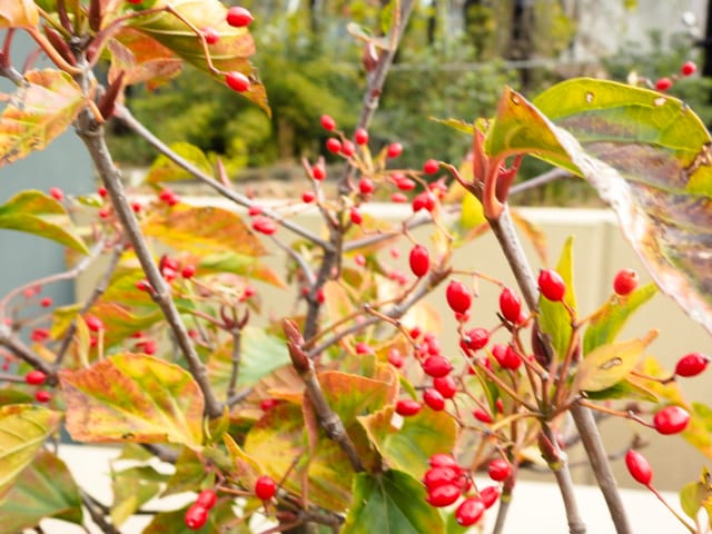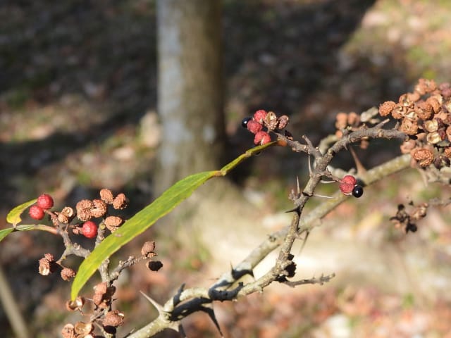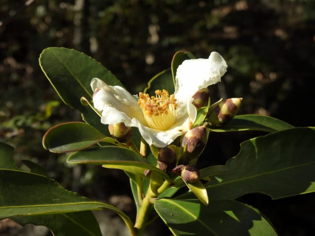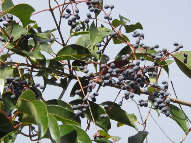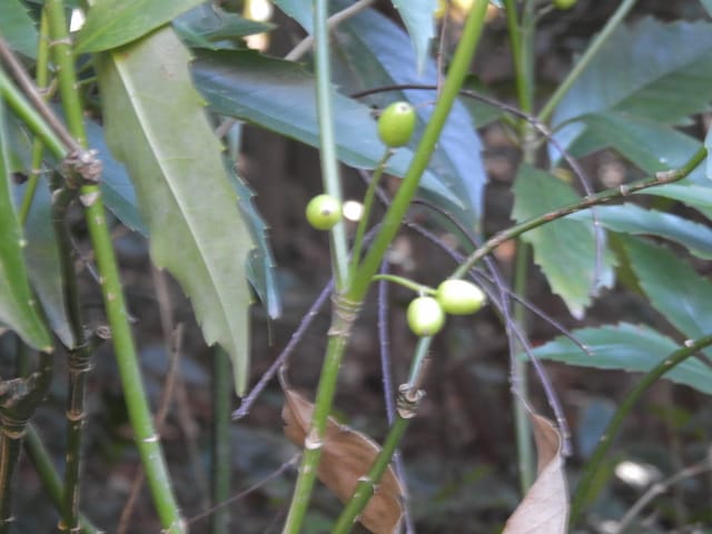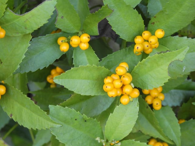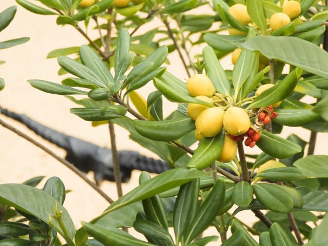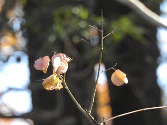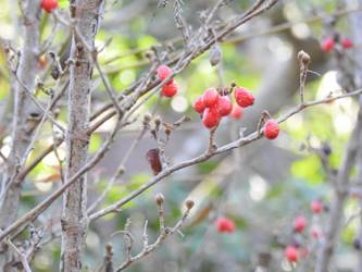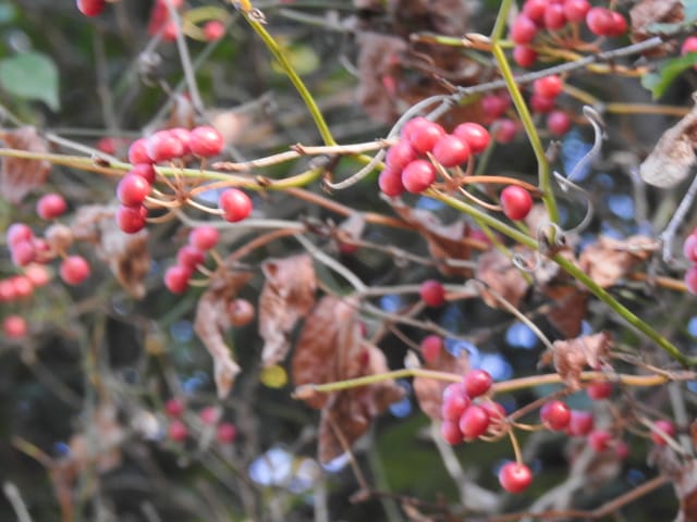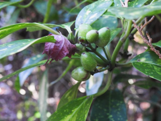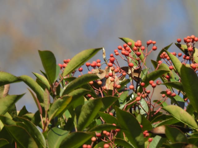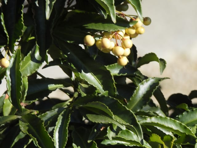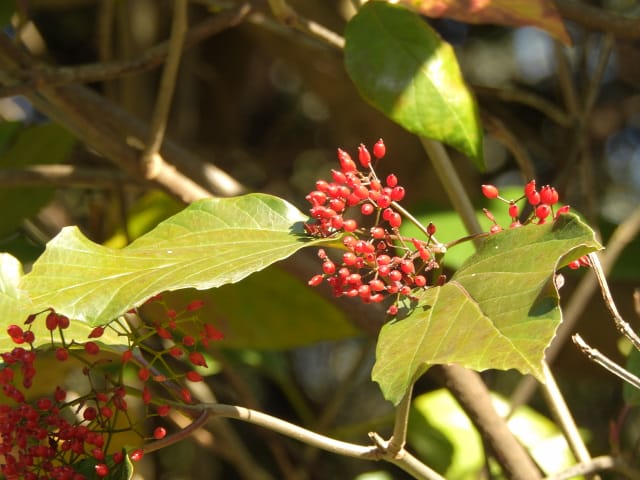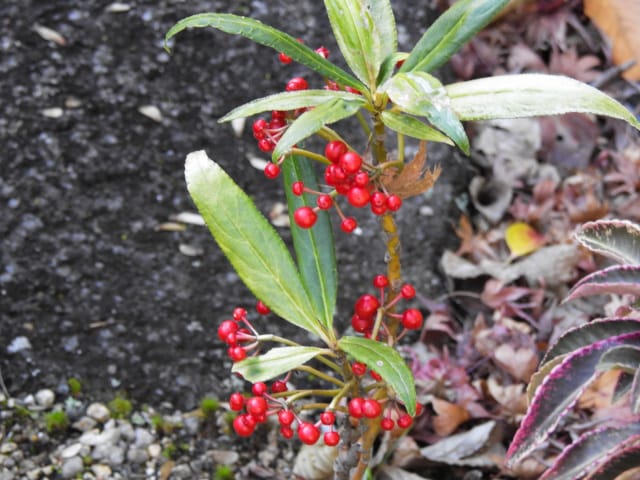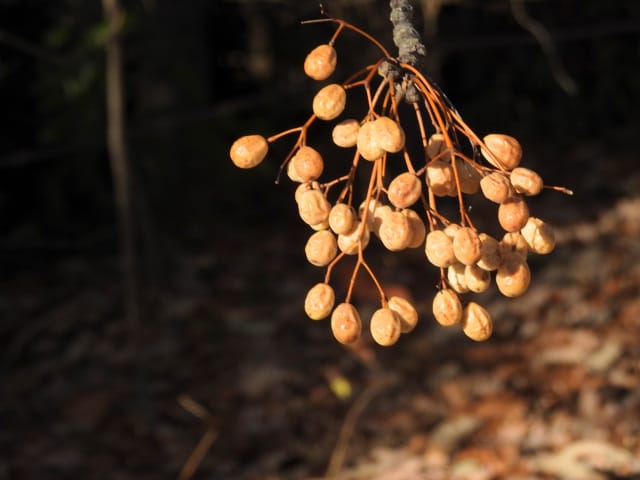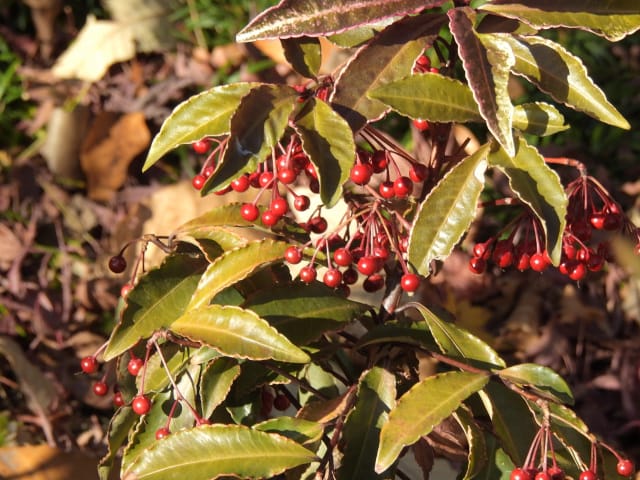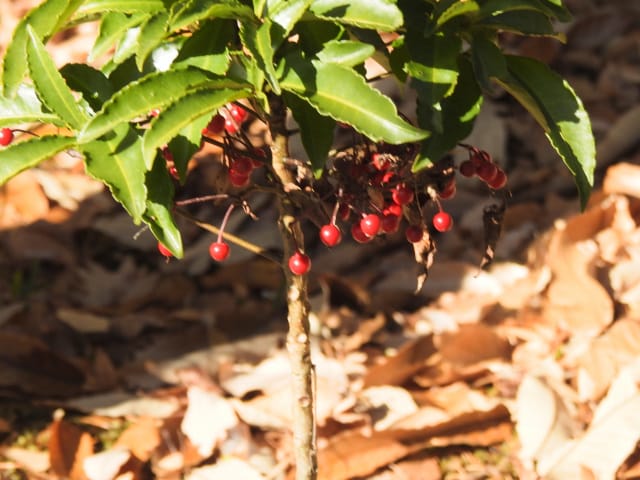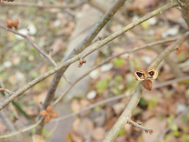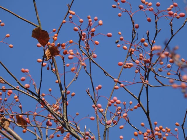 名古屋市東山動植物園温室以外の花&実25/12/16 12月2日に引き続いての訪問です。 この日は、ほぼ無風の、最低気温が3℃で最高気温が13℃になる、晴れ、との天気予報。 動物園正門に到着した10時頃こそ、時折雲が掛かったものの、以降は、日向では丁度良い気温で、絶好の草花散策日和でした。 ゾウ舎前のセンダンの実、ムクロジの実、は、見頃でした。 オランウータン舎前では、トベラの実が弾け出しており、ハクサンボクの実も残留していました。 ゾアシスイースト西のコクチナシの実は無事でしたが、色付きは今一でした。 キリン舎東脇のトチノキの実は、残留しており、 インコ舎前のトウネズミモチの実は、見頃を保っていました。 上池南西脇のクロミノニシゴリの実が残留し、 上池南では、シャシャンボ・ナツハゼ、の実は残留し、アズキナシの実の色付きが濃くなっており、 上池北東脇のマメナシの実は、落葉が進み、見易くなってきました。 上池門を出て、植物園門に向かうと、 植物園門前のカナメモチの実が真っ赤になっており、 植物園門南脇柵では、カクレミノの実は見頃を継続し、新たに、綺麗に色付いたビナンカズラの実も、見付かりました。 植物園門経由で、植物園に入園。 伊藤圭介の庭では、アゼトウナが花期を終え、ヤブコウジの実が元気でした。コクサギの実の様子を見てみると、2花序だけですが、弾けて、黒い種が顔を出していました。 植物会館南では、ヒメシャラの実が弾け出し、鉢植えのマンドラゴラ2鉢の花が閉じていました。 植物会館南脇鉢植えのダイヤモンドリリーが咲き残っており、 植物会館南脇花壇(以下、「会館脇花壇」と略記)では、グレビレア‘ロビンゴードン’が咲き残り、オオバコ科メカルドニア‘ゴールドダスト’が見頃でした。 何時ものように、植物園門を出て、上池門から、動物園に再入園。 エレベータ経由で、彩景橋を渡り、植物園に再入園。 アメリカ産植物見本園(以下、「米国産園」と略記)では、クチナシの実が見頃を継続し、アロニア・クラタエグス=クルスガリ、の実が残留しており、アメリカアサガラの実が枯れ、キリラ=ラセミフローラの実が綺麗でした。 フォークダンス広場(以下、「FD広場」と略記)脇では、バンクシア2種(スピヌロサ・インテグリフォリア)が咲き残っていましたが、メラレウカ2種は花期を終えていました。南西のキョウチクトウの実は、まだ弾けておらず、南東では、タイワンモクゲンジの実が残留していました。 しゃくなげの森では、スノードロップ・エルウェシーが10数株咲き残って見頃で、オオカナメモチの実が真っ赤に色付いていました。 花園橋北東脇のアメリカスズカケノキの実が綺麗で、 ツツジヶ丘南麓では、トウネズミモチの実、カンレンボクの実、が残留し、ピラカンサの実が元気でした。 中国産植物園林では、期待していた、カミヤツデ・ハマメリス=ウエルナリスは蕾のままでしたが、ベトナムツバキが咲き出し、グランサムツバキが満開で、ウスギモクセイが半開ながら咲き残り、ヒイラギモチの実、中国ガマズミの実、タチバナモドキの実、が残留し、オオカナメモチの実が見頃を継続していました。 オイワケヒイラギナンテンの様子は見忘れてしましたが、シャクナゲモドキは、相変わらず、赤い蕾を付けていました。 花園橋北東脇に戻ってくると、サンゴシトウが2花序の蕾を付けており、 花園橋北西脇のアツバキミガヨランが元気でした。 ガーデンステージ南東脇のシロダモの実も、元気で、 宿根草園では、ライオンノミミが満開になり、ミントマリーゴールドが見頃で、エキナセアが1輪、咲き残っていました。 宿根草園北脇では、今まで気が付かなかった、アズキナシが綺麗な赤い実を付けていました。 11時40分過ぎから12時10分過ぎに渡り温室での草花散策を実行。 温室での散策後、何時ものように伊藤圭介の庭東脇ベンチに腰掛け、コンビニおにぎりで昼食を済ませました。 ところで、コンビニのおにぎりですが、15年ほど前は、1つで100円でしたが、今は、2倍の200円になってしまい、年齢のせいか、食が細くなってきたのも鑑み、今まで、2個食していたものを、この日から1つに減らしました。腹八分目の感じで、良かったような、悪かったような。 宿根草園に戻り、午後からの散策を開始。 武家屋敷門南脇のサンシュユは、すっかり葉を落とし、赤い実が見易くなっていました。 也有園周辺では、北脇のカラタチバナの実・マンリョウの実が、見頃を維持しており、北の畑脇のユズの実も残留していました。東脇では、オケラの綿毛が全開しており、ヤマコウバシの実が黒く輝いていました。 奥池南西の堰堤道路南傍では、アオキやフイリアオキの実が、蒼いながらも、たわわに稔っていました。 奥池北のアジサイ園南西脇では、多数のキチジョウソウが咲き残っており、 奥池北カラマツ林では、シマカンギクが咲き残り、スズカアザミの綿毛が見頃を維持していました。 奥池北脇