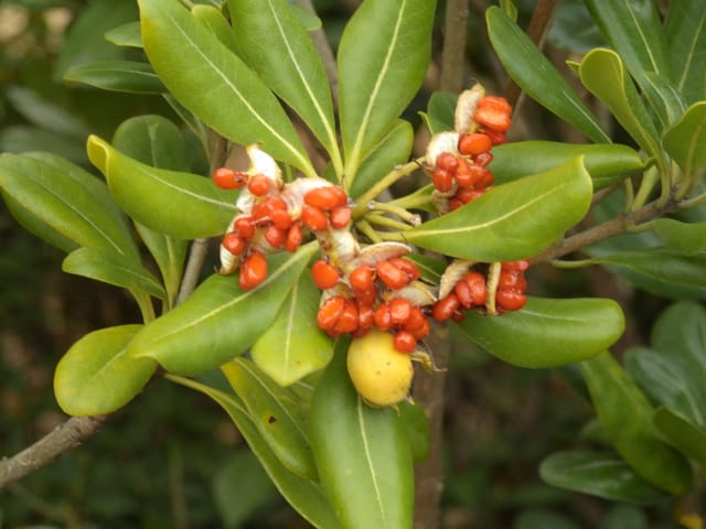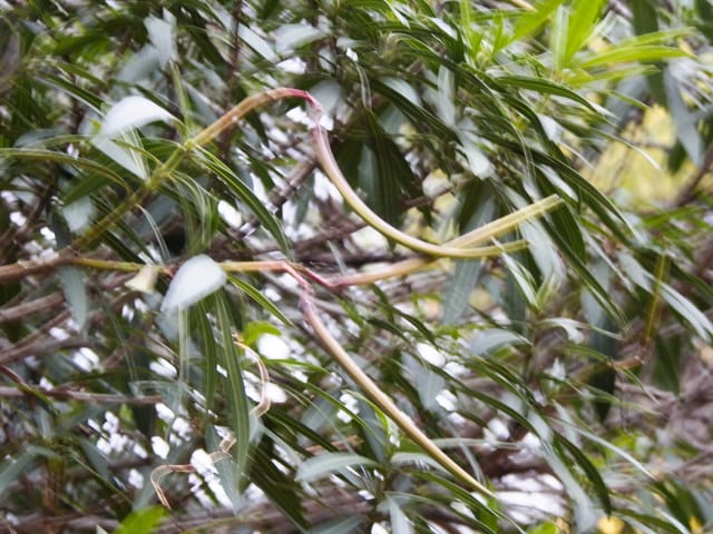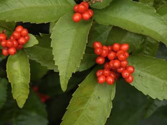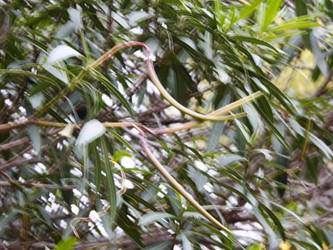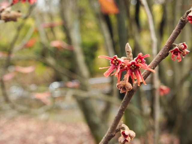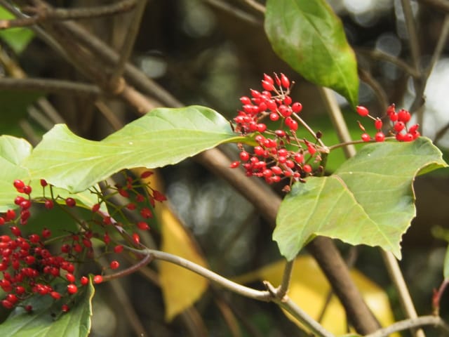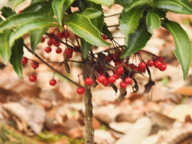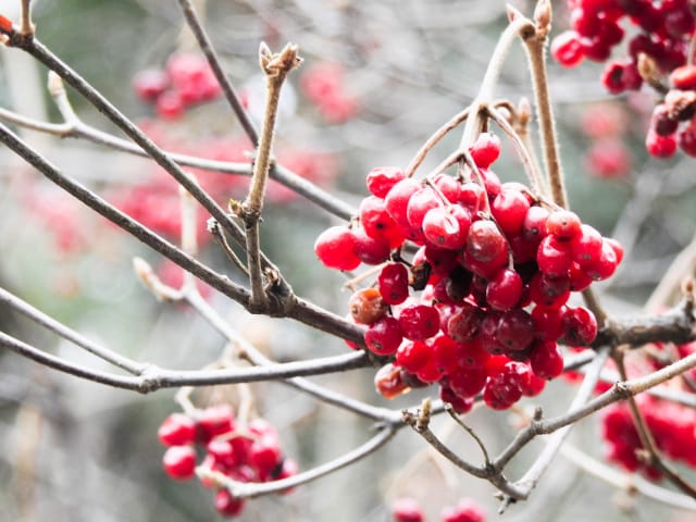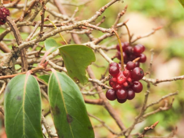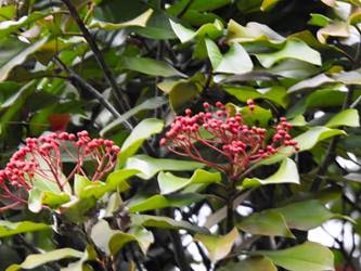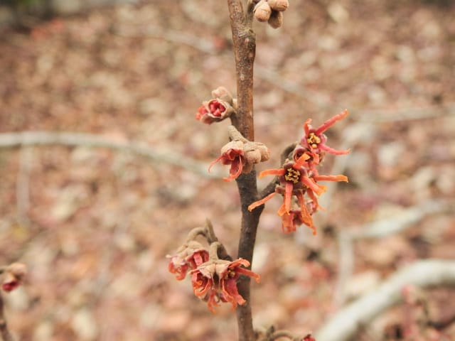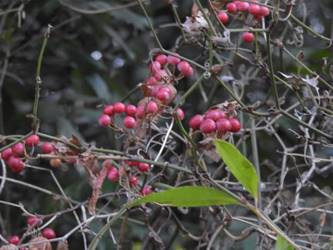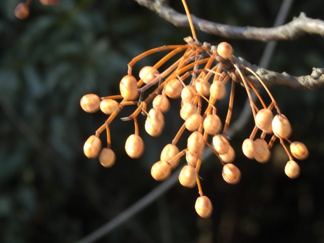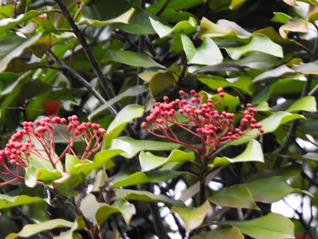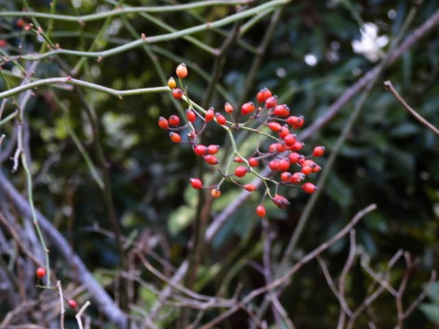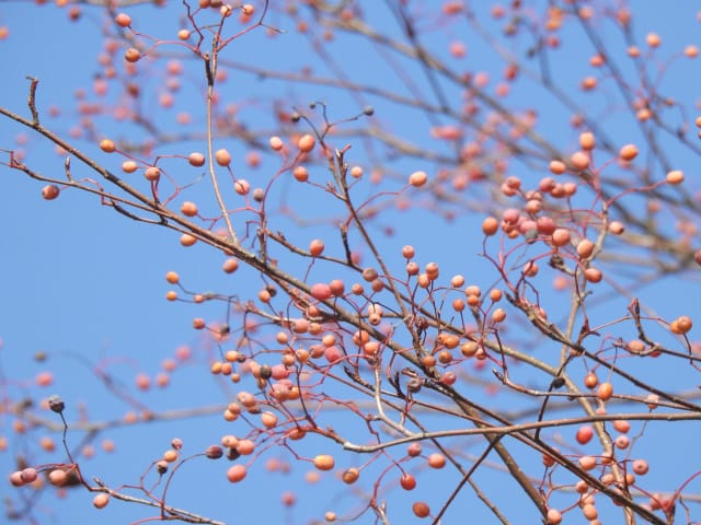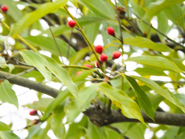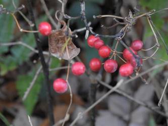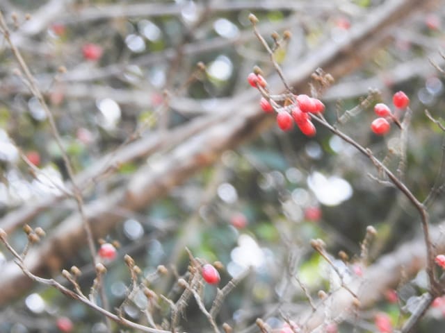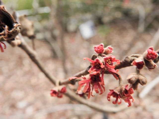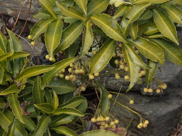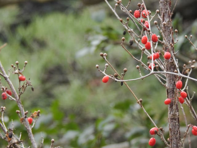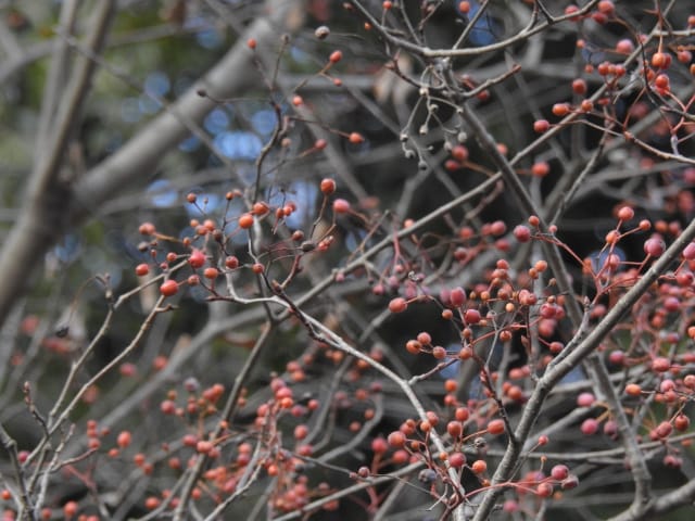 名古屋市東山動植物園温室以外の花&実26/01/04 25年12月16日に引き続いての訪問です。 この日の天気予報は、ほぼ無風の、曇り時々晴れで、最高気温は10℃、との事。 動物園正門に到着した10時時点では、空一面を雲が覆う、寒い冬空でした。 ゾウ舎前では、センダンの実が白く稔り、ムクロジの実が残留していました。 トラ舎前のセンダンの実も見頃で、 オランウータン舎前では、ハクサンボクの実、トベラの弾けた実、が残留し、コクチナシの実が、赤く色付いていました。 キリン舎東脇のトチノキの実、インコ舎前のトウネズミモチの実、が元気で、 上池南西脇のクロミノニシゴリの実も、残留していました。 上池南では、シャシャンボの実が元気で、すっかり落葉した、ナツハゼ・アズキナシ、の実も残留しており、 上池北東脇のマメナシの実も残留していました。 上池門を出て、植物園門に向かうと、 植物園門前のカナメモチの実が見頃を継続しており、 植物園門南脇柵では、カクレミノの実が元気で、ビナンカズラの実が終盤になっていました。 植物園門から植物園に入園し、最新の花マップ(1月2日発行。12月24日調査)を入手。 伊藤圭介の庭では、ヤブコウジの実が元気で、イズセンリョウが蕾を付けていました。 植物会館南のヒメシャラの弾けた実は無事でしたが、 植物会館南脇鉢植えのダイヤモンドリリーは最終盤となり、撮影をパスしました。 植物会館南脇花壇(以下、「会館脇花壇」と略記)では、初花のツバキ‘バターミント’が開花しており、ギンヨウアカシアが蕾を付け出し、グレビレア‘ロビンゴードン’が、咲き残っていました。 植物園門を出て、上池門から動物園に再入園。 エレベータ経由、彩景橋経由、で、植物園にも再入園。 アメリカ産植物見本園(以下、「米国産園」と略記)では、クラタエグス=クルスガリの実、クチナシの実、ノイバラの実、が見頃を継続し、アロニアの実も、逆光の中で残留していました。 フォークダンス広場(以下、「FD広場」と略記)脇では、バンクシア2種(スピヌロサ・インテグリフォリア)が元気で、南西のキョウチクトウの実も元気でしたが、まだ弾けておらず、南東のタイワンモクゲンジの実が終盤になっていました。 しゃくなげの森では、クリスマスローズ‘マリア’が蕾を付け、スノードロップ=エルウェシーの新規花が10輪以上開花しており、オオカナメモチの実が見頃を継続していました。 花園橋北東脇では、タイワンフウ・アメリカスズカケノキの実が、落葉により見易くなっていました。 ツツジヶ丘南麓では、ピラカンサの実は無事でしたが、カンレンボクの実は、枯れてしまった感じで、トウネズミモチの実の様子は、見忘れてしまいました。 中国産植物園林(以下、「中国産園」と略記)では、期待していたものの内、マンサク科ハマメリス=ウェルナリスが1株20輪程開花し見頃でした。オイワケヒイラギナンテンは、相変わらず、開花しているか蕾なのか判らない状態で、カミヤツデは蕾のままでした。ウスギモクセイは1株数花序が半開状態でした。 シナマンサクの蕾が膨らんで黄色い花弁が顔を覗かせており、タイワンツバキ・グランサムツバキは、無事でした。ヒイラギモチ・オオカナメモチ・マンリョウの実が元気で、中国ガマズミの実は、萎れ出していました。 花園橋北西脇では、アツバキミガヨランが咲き残り、トゲナシノイバラが実を付けていて、 ガーデンステージ南東脇のシロダモの実が見頃を保っていました。 宿根草園では、ヒマラヤユキノシタが1株開花し、ダイコンソウが、実を付け、返り咲きの花も、1輪だけですが、付けていました。ノコギリソウの花が残留していて、ライオンノミミが満開で、パンパグラス‘プミラ’の穂が残留していました。 11時40分過ぎから、12時15分過ぎまで、温室での散策を行い、 伊藤圭介の庭東脇のベンチに腰掛けて、コンビニおにぎり1個と魚肉ソーセージ1本の昼食を食しました。 昼食が終る、12時半頃には、空が晴れて、青空が見え、暖かな陽光に包まれました。 以降、晴れたり曇ったりする天気の中での散策となりました。 宿根草園に戻り、 宿根草園北脇では、アズキナシの実が綺麗で、コウヤボウキの開いた綿毛が綺麗でした。 武家屋敷門南脇では、サンシュユの実が残留しており、 也有園周辺では、北脇で、カラタチバナの実・マンリョウの実、が見頃を継続し、シキミが蕾を付け出していました。東脇では、カンアオイが蕾を付け、オケラの綿毛が残留していましたが、ヤマコウバシの実は、確認を忘れてしまいました。 奥池南西道路脇では、フイリアオキの実が赤くなり出しており、 奥池北脇では、シロミノマンリョウの実が見頃を継続し、センニンソウの綿毛が全開しており、ヒノキバヤドリギの実が目立って来ました。 合掌造りの家周辺では、北西脇のカナメモチの実が見頃を継続し、南西端のシロミノマンリョウの実、南脇のシャシャンボの実、も、見頃を保っていま