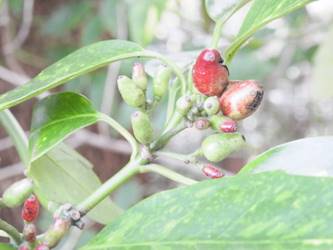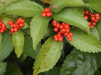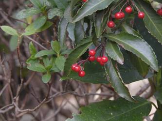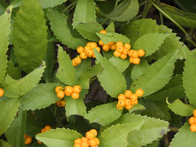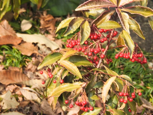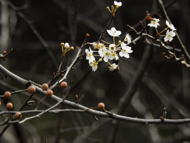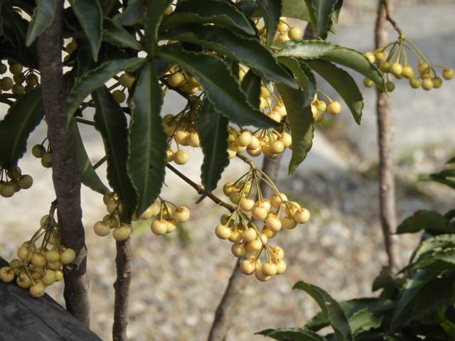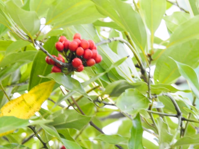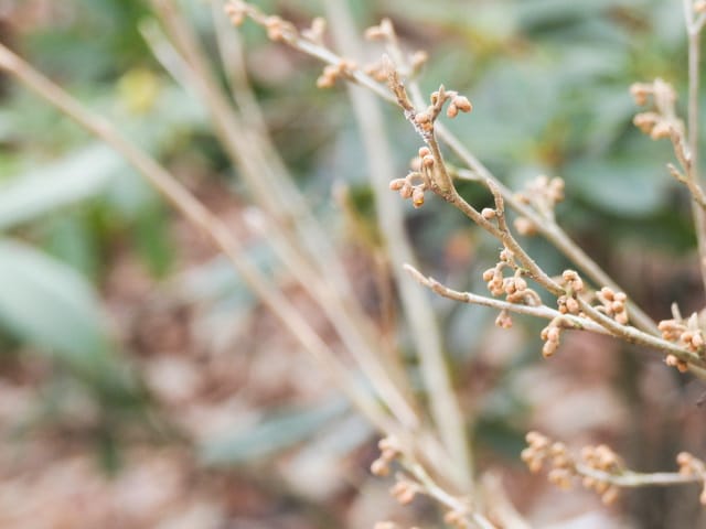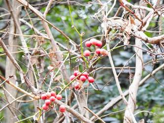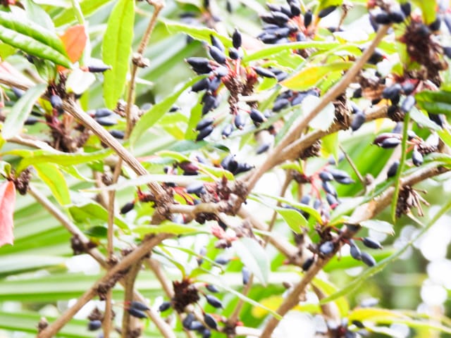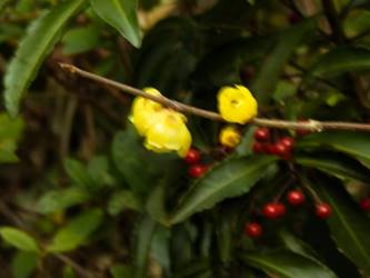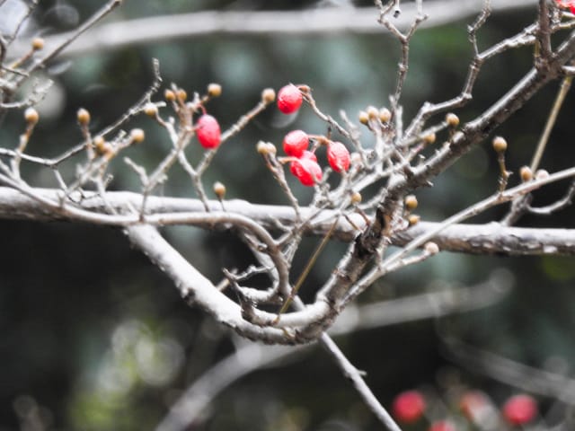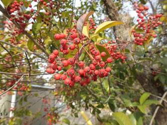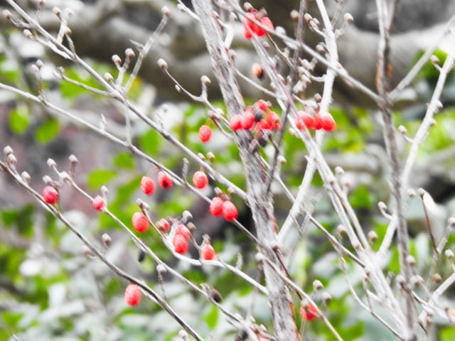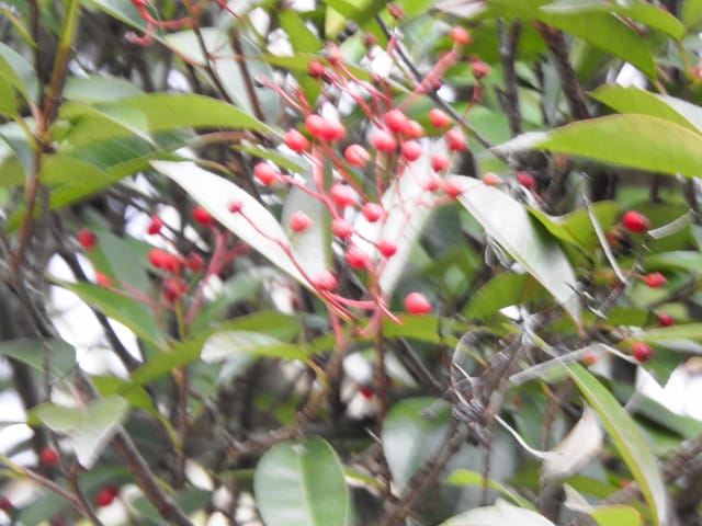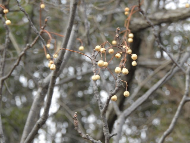 名古屋市東山動植物園温室以外の花&実26/01/15 この日は、最高気温が10℃で、風は弱いものの、時折日が差す、薄曇り、との天気予報。 動物園正門に到着したのは、10時少し過ぎ。 ゾウ舎前では、センダンの実、ムクロジの実、が残留し、 オランウータン舎前の、ハクサンボクの実、トベラの弾けた実、コクチナシの実、も、無事でした。 キリン舎東脇のトチノキの実は、相変わらず、落果せずに残留しており、 インコ舎前のトウネズミモチの実が見頃を保っていました。 上池南西脇のクロミノニシゴリの実は、いよいよ最終盤で、 上池南では、シャシャンボの実が残留し、ナツハゼの実は辛うじて実体を保っており、アズキナシの実が、赤く稔ってきました。 上池北東脇のマメナシの実も、見頃を保っていました。 何時ものように、上池門を出て、植物園門に向かうと、 植物園門前のカナメモチの実は、見頃を保っていましたが、植物園門南脇柵の、カクレミノの実、ビナンカズラの実は、殆どが、落果してしまいました。 植物園門から、植物園に入園。 植物会館南のグレビレア=アルピナが多数の蕾を付けており、 伊藤圭介の庭のヤブコウジの実が元気でした。10時半、ひょっとして、シモバシラの根元に「霜柱」が残留しているかも、と、見てみましたが、痕跡すら伺えませんでした。 植物会館南脇の鉢植えのマンドラゴラが見頃でしたが、 植物会館南脇花壇(以下、「会館脇花壇」と略記)では、ギンヨウアカシアの蕾は元気でしたが、グレビレア‘ロビンゴードン’が最終盤になっていました。 何時ものように、 植物園門を出て、上池門経由で、動物園に再入園、 エレベータ経由、彩景橋経由で、植物園にも再入園。 アメリカ産植物見本園(以下、「米国産園」と略記)では、クラタエグス=クルスガリ・アロニア・クチナシ・ノイバラ、の実が残留し、何時もは完全逆光のアロニアの実に日が差し、赤い色を現していました。 フォークダンス広場(以下、「FD広場」と略記)脇では、バンクシア=スピヌロサが満開で、バンクシア=インテグリフォリアが咲き残り、グレビレア2種(‘ファイヤーワークス’・‘ジョンエバンス’)の蕾が赤味を帯びていましたが、グレビレア‘ヒルズジュビリー’は、根元から伐採されていました。 南西のキョウチクトウの実は、まだ弾けておらず、南東のタイワンモクゲンジの実は、萎れてしまいました。 しゃくなげの森では、期待していた、クリスマスローズが2種(‘マリア’・‘ハイジ’)咲き出し、スノードロップ=エルウェシーが10株以上咲き残り、オオカナメモチの実も残留していました。 小池東脇の、黄色い花を付けるマンサクが多数の花芽を付け、小池北端で群生しているピンクネコヤナギも、花芽を付けていました。 花園橋北東脇では、タイワンフウの実、アメリカスズカケノキの実、が残留しており、 ツツジヶ丘南麓では、トウネズミモチの実、ピラカンサの実、が見頃を保ち、カンレンボクの枯れた実も残留していました。 中国産植物園林(以下、「中国産園」と略記)では、マンサク科ハマメリス=ウェルナリスが満開になり、オイワケヒイラギナンテン2株の花が残留していましたが、期待していたカミヤツデは、今年も蕾のまま、萎れていました。ウスギモクセイ1株が多数の蕾を付け、シナマンサクの蕾が膨らんでいました。 ホソバテンジクメギの黒い実が目立ち、ヒイラギモチ・マンリョウの実が残留する中、オオカナメモチの実の様子を確認するのを忘れてしまいました。中国ガマズミの実は、萎れながら残留しており、シャクナゲモドキの蕾が赤く目立っていました。 花園橋に戻ってくると、西脇のアツバキミガヨランの花が終盤になっており、撮影をパスしました。 ガーデンステージ南東脇のシロダモの実が見頃でしたが、 宿根草園は、真冬の「枯れ野」となり、ライオンノミミの花と、サンゴミズキの赤い枝(撮影ナシ)、パンパグラスの穂、が、残留していただけでした。 11時半過ぎから12時過ぎまで、温室での散策を行い、 植物会館南脇の、白色の、椅子付きテーブルで、昼餉のコンビニおにぎりと魚肉ソーセージを食しました。 午後からは、お日様が顔を出す時間が長くなり、 宿根草園北脇のアズキナシの実が、青空をバックに、赤く映え、コウヤボウキの綿毛も輝いていました。 武家屋敷門の南脇で、フクジュソウの花芽を探してみましたが見当たらず、代わりにソシンロウバイが咲き出し、そのバックで赤く輝く、マンリョウの実、にも遭遇出来ました。サンシュユの実が残留し、東脇のマンリョウの実も見頃でした。 也有園周辺では、南東のスイセンが咲き出し、北脇の、カラタチバナの実・マンリョウの実、が見頃を継続しており、シキミはまだ開花に至らなかったものの、東脇の、オケラの綿毛・ヤマコウバシの実、が残留していました。 奥池南西道路脇のフイリアオキの実の色付きは今一でしたが、 奥池には、2羽のカイツブリが居て、 奥池北