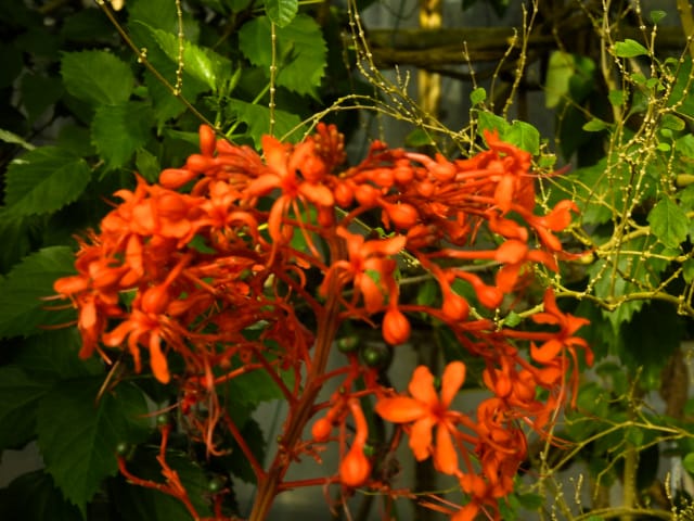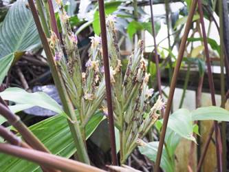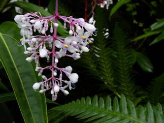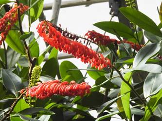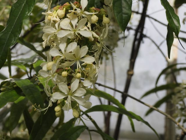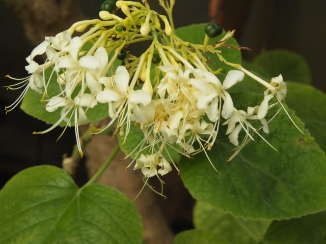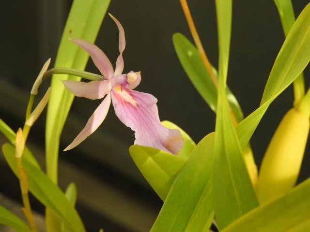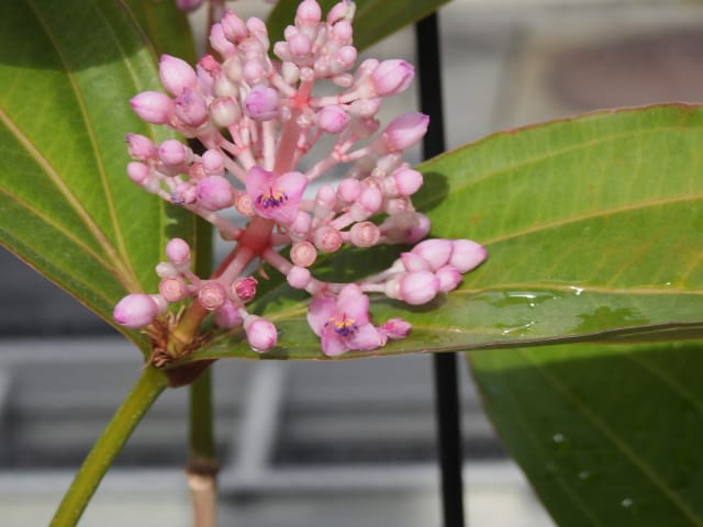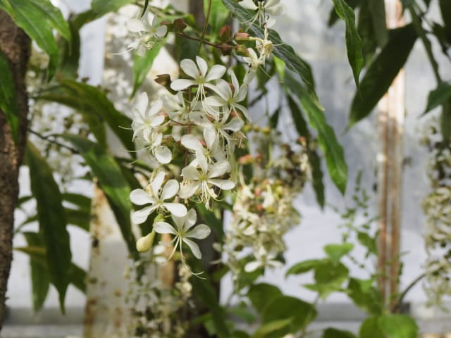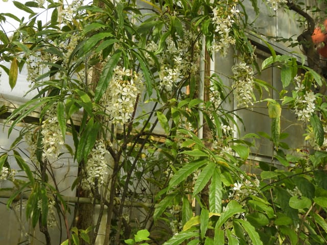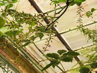 名古屋市東山植物園温室の花&実24/11/17 10月31日に引き続いての訪問です。 サンギャラリー(以下、「SG」と略記)では、新規に12種(クラリンドウ・ニンニクカズラ・ジャスミヌム=レックス・ルッティア=フルティコサ・ツンベルギア=キルキイ・バーレリア=カンディダ・蘭3種(リカステの一種・ブラッシジウム・セロジネ=トリネルビス?)・セイロンマツリ・チャイニーズハット・オウギバショウモドキ)が咲き出し、オウコチョウ、イソクラ類5種(イソクラ=Cv・イソクラ=グランディフロラなど)、アシスタシア=インツルサ、ヒポエステス=アリスタタ、オドントネマ=ストリクツム、などが元気で、ジュズサンゴの実、ロウソクノキの花と実、が目立っていました。 中央ヤシ室では、バショウ科‘地湧金蓮’・インドソケイ・ヘリコニア=プシッタコルム?が咲き残っていました。 西花卉室では、新規にクサトベラ科スカエウォラ=アエムラが咲き出し、カンガルーポウ、マメ科アカキア=コングナタ、キク科クリソケファラム=アピグラツム、が、咲き残っていました。 多肉植物室(以下、「多肉室」と略記)では、新規に、ユーフォルビア‘千里紅’、アロエ3種(イサロエンシス・アンドンゲンシス・デスコイングシイ)が咲き出し、ユーフォルビア‘黒摩利支天’が元気でした。 東花卉室では、新規に、カメリア=オクトペタラ、ブルワリア=スぺキオサ、が展示され、ペンタス=グラフィティ、プセウデランテムム=アクミナティッシムム、ペンタス=ランケオラタ、メディニラ=スぺキオサ、タイワンレンギョウ‘ライム’、キツネノヒガサ、などが元気で、グロッバ=ウイニティイ・クレロデンドルム=ウガンデンセ・ウスギコンロンカなどが咲き残っていました。 香の有用植物室(以下、「香り室」と略記)では、オオバナソケイが開花し、ハナシュクシャ・イランイランノキが咲き残っていました。 サガロ温室では、開花が確認できませんでした。 水生植物室(以下、「水生室」と略記)では、クズウコン科プレイオスタキア=ブルイノサが開花し、レッドジンジャー・ニンフォイデス=SP・ヘリコニア=プシッタコルム、が咲き残り、サガリバナ・三尺バナナ、の実が、目立っていました。 ハワイアンハウス(以下、「ハワイ室」と略記)では、メディニラ=クラサタが元気で、蘭:セロジネ=トリネルビス?・カラテア=マジェスティカが咲き残り、オスモキシロン=リネアーレ・ムクナ=ベネッティが蕾を付けていました。 中南米産植物温室(以下、「中南米室」と略記)では、エクメア‘ミニ・カル’、ミニパイナップルが開花し、ティランジア=キアネアが見頃で、プセウデランテムム=バリアビレ・ムラサキゴテンが、咲き残っていました。 |