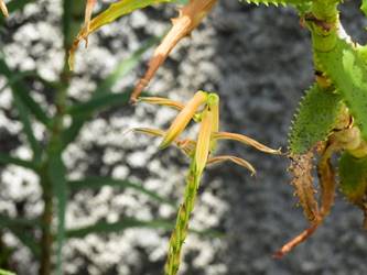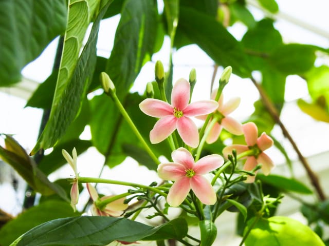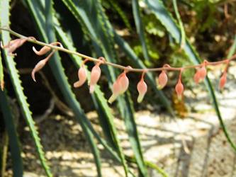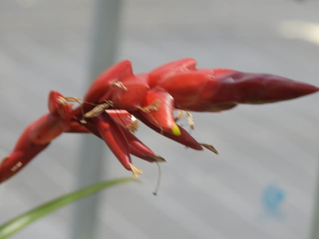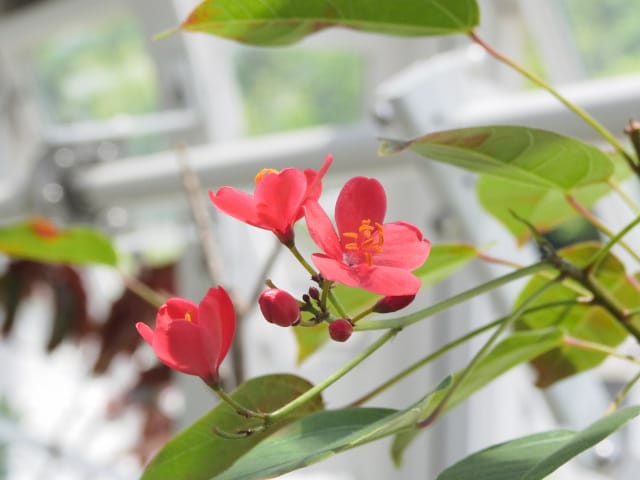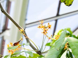 名古屋市東山植物園温室の花&実25/06/17 6月1日に引き続いての訪問です。 温室後館の工事ですが、2029年度中の完了を目指している、との事で、温室全館が再開されるまで、私が元気でおられるかどうか、判りませんね。 中央ヤシ室では、初花のシクンシ、サンギャラリーから移設された感じのオジギソウ、の2種が新規に開花し、オオバセンボウ、マメ科ムユウジュ、バショウ科‘地湧金蓮’、ヤエヤマスズコウジュ、が咲き残り、オガサワラビロウの実も残留していました。 東花卉室では、ティランジア2種(ストレプトフィラ・‘カーリースリム’)が新規に開花し、ペンタス2種(グラフィカ・ランケオラタ)・ウラムラサキ・コエビソウ・ナンヨウザクラ・クフェア・蘭:スクテラリア‘ブルーファイヤー’・プセウデランテムム2種(SP・アクミナティッシムム)・ヨウシュコバンノキ・クレロデンドルム=ウガンデンセ・サザンクロス・ハイナップル科フリーセア=ナナ・ミカン科カレーリーフ・キツネノヒガサ、などが元気で、ディアネラの実も残留していました。 香りの有用植物室(以下、「香り室」と略記)では、イランイランノキ・マートル・キフゲットウ(黄斑月桃)・マツリカ・ヒョウモンラン(水生植物温室から移設?)が、新規に開花し、イエライシャン(夜来香)・ラベンダー‘ブルースピアー’などが咲き残っていましたが、バニラは蕾で、レモンマートルが蕾を付けていました。 西花卉室では、花が確認できませんでした。 多肉植物室(以下、「多肉室」と略記)では、アロエ2種(‘翡翠殿’・デスコイングシイ)が開花し、キョウチクトウ科パキポディウム=デンシフローラム・ツルボラン‘聖牛’・ユーフォルビア4種(‘黒摩利支天’・‘白銀珊瑚’・カプサインテマリエンシス・ペディラントイデス)が、咲き残り、ウェルウィッチア科‘奇想天外’2株が元気に蕾を付けていました。 |