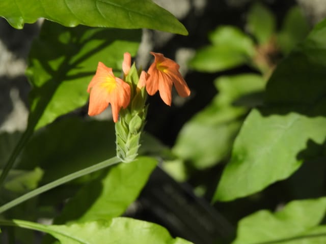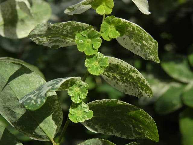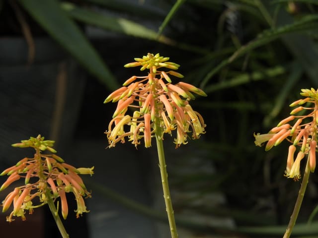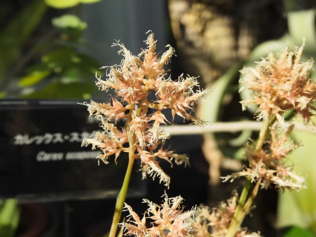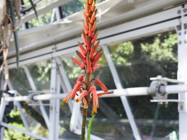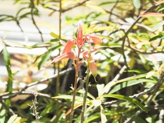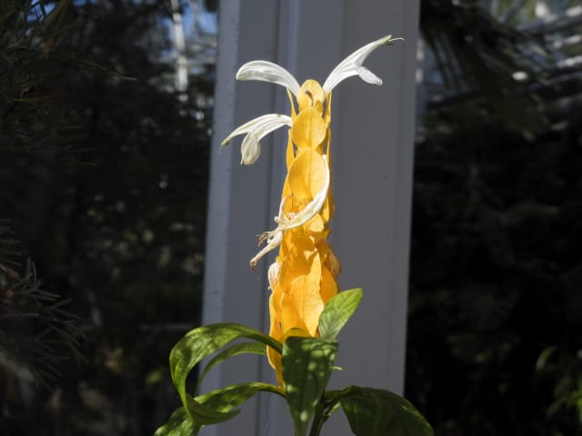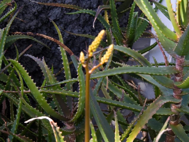 名古屋市東山植物園温室の花&実25/11/15 11月2日に引き続いての訪問です。 多肉植物室(以下、「多肉室」と略記)では、新規に3種のアロエ(‘雪女王’・スコルピオイデス・アンドンゲンシス)が咲き出し、アロエに似た花を付けたキョウチクトウ科パキポディウム=ラメライも、咲き出していました。ユーフォルビア‘黒摩利支天’は、相変わらず元気で、アロエ=デスコイングシイが終盤の花を付け、アロエ=ダウェイが蕾を付けていました。 西花卉室では、ティランジア=ストリクタ‘ムーングロー’が見頃となり、リュエリア=キリオサが咲き残っていました。アオイ科パロボラチョは、相変わらず、「花後?」状態で、撮影をパスしました。 中央ヤシ室では、バショウ科‘地湧金蓮’が花期を終え、インドソケイ・ヘリコニア・プシッタコルム?が残留開花しており、ウツボカズラ・メディニラ=クラサタの小花が残留していました。 キヤニモモの実、オガサワラビロウの実、ヤシ科カマエドレアの実が、元気で、オジギソウが花期を終え、実(綿毛)を付けていました。 東花卉室では、新規に6種(アオイ科ドンペイヤ・ヒルガオ科イポモエア=ロバタ・トウダイグサ科‘ブルーバタフライ’ゴマノハグサ科バコパ・カメリア=オクトペタラ・クフェア‘タイニーマイス’)が開花し、 ペンタス2種(グラフィカ・ランケオラタ)・カヤツリグサ科カレックス=スカポーサ・ウコンサンゴバナ・オオササウチワ・ヨウシュコバンノキ・カリアンドラ=エマルギナタ・サンゴアブラギリ、が元気で、 セイロンマツリ・ポリガラ=ダルメシアナム・ウスギコンロンカ・クフェア・キツネノヒガサが咲き残っており、 ミカン科キルトス=SPの実が稔っていました。 香りの有用植物室(以下、「香り室」と略記)では、ラベンダー‘ブルースピアー’・イランイランノキが咲き残り、ハナシュクシャが終盤で、ミカン科ベルガモットの実が元気でした。 |