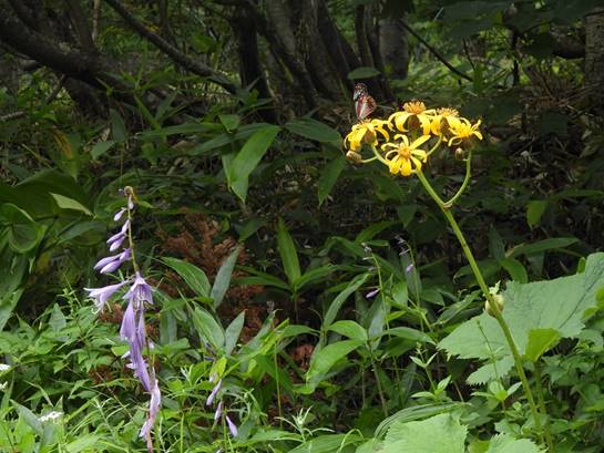 マルバダケブキ+アサギマダラ(長野県志賀高原東館山高山植物園)25/07/29P