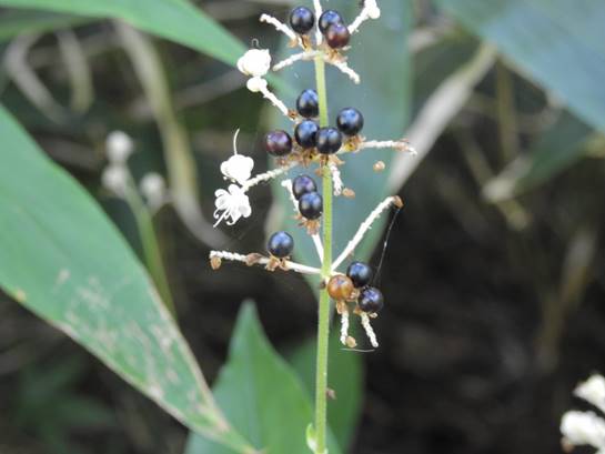 ヤブミョウガの実(名古屋市東山植物園日本庭園池西脇)25/08/01P