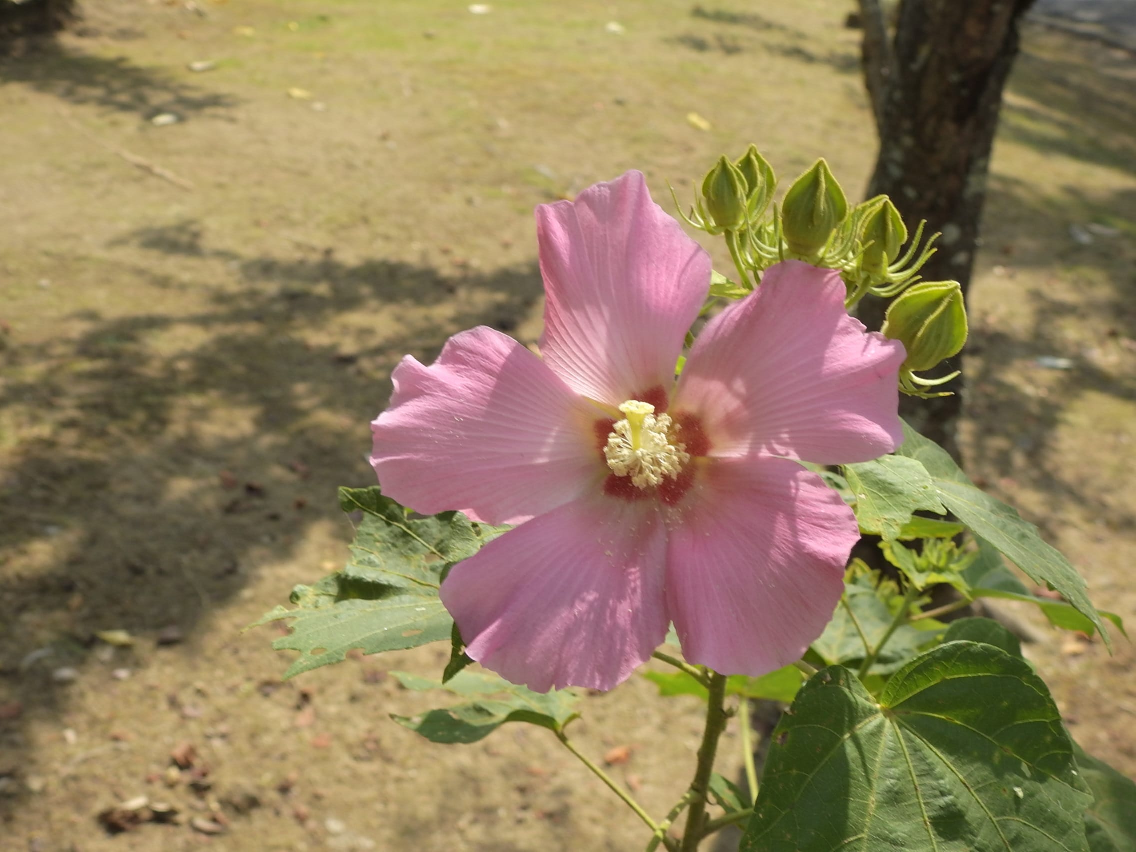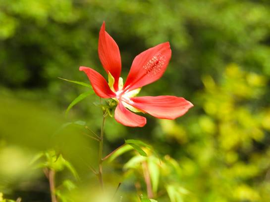 赤花の、モミジアオイ(名古屋市東山植物園アメリカ産植物見本園)25/09/17P