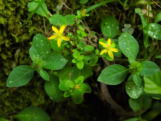 サワオトギリ。同左上(春日井グリンピア温室東石垣脇水路)25/09/18