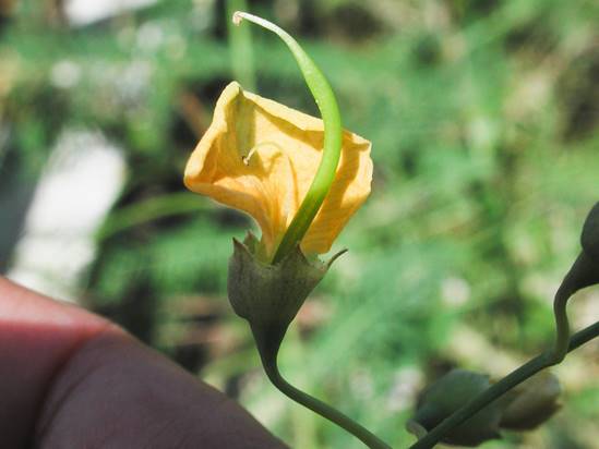 スズメウリの雌花。上の蔓の花(東谷山フルーツパーク四季の花園)25/09/15