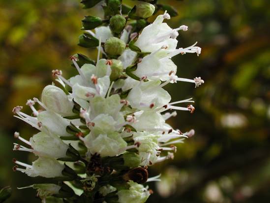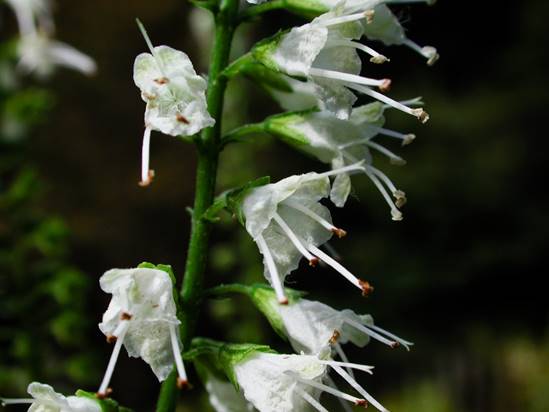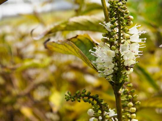 シモバシラ。左の花序の小花(名古屋市東山植物園源氏の庭南端)25/10/02