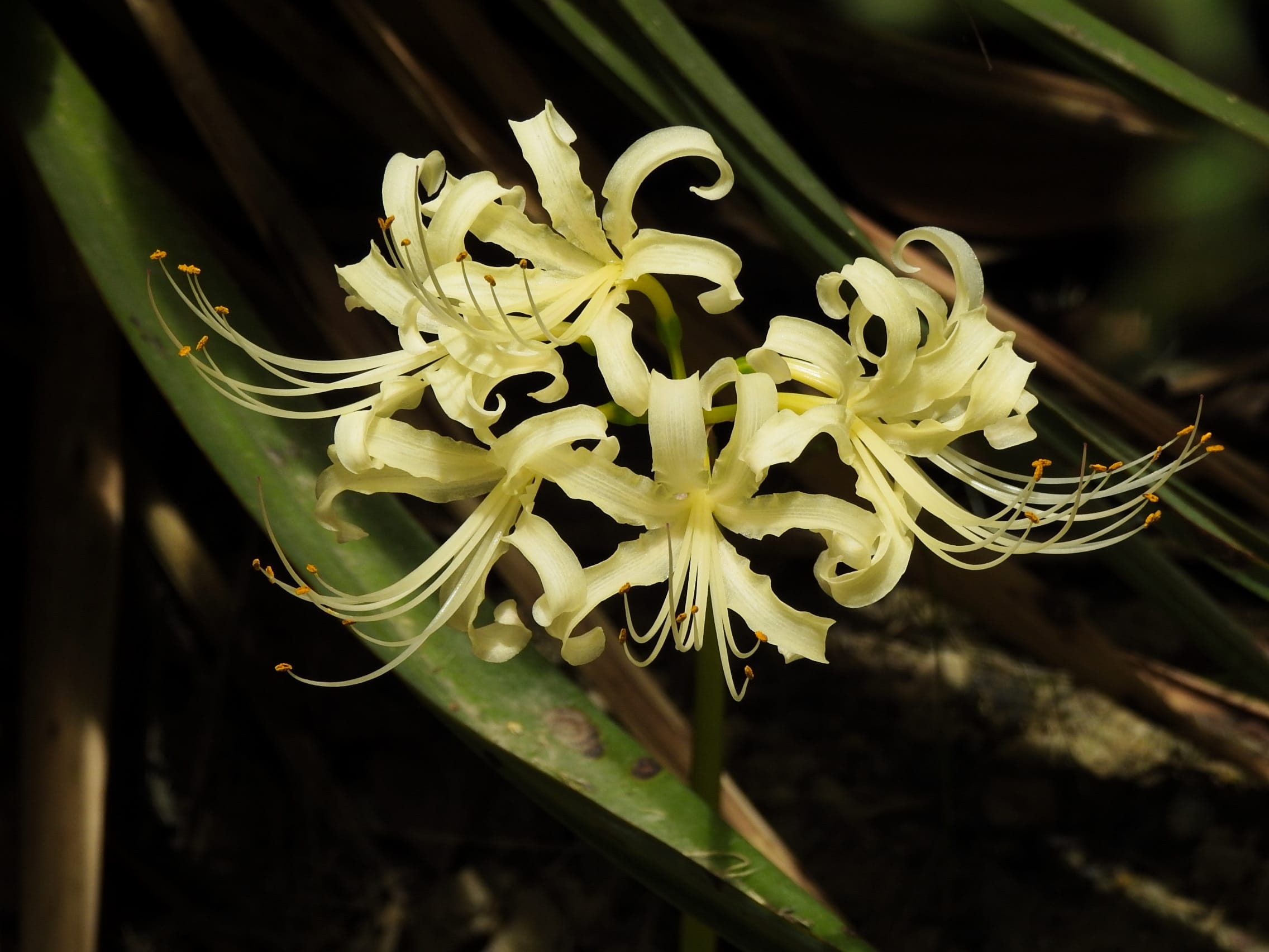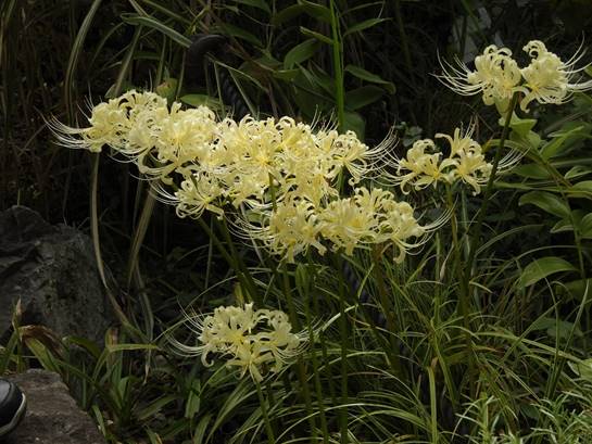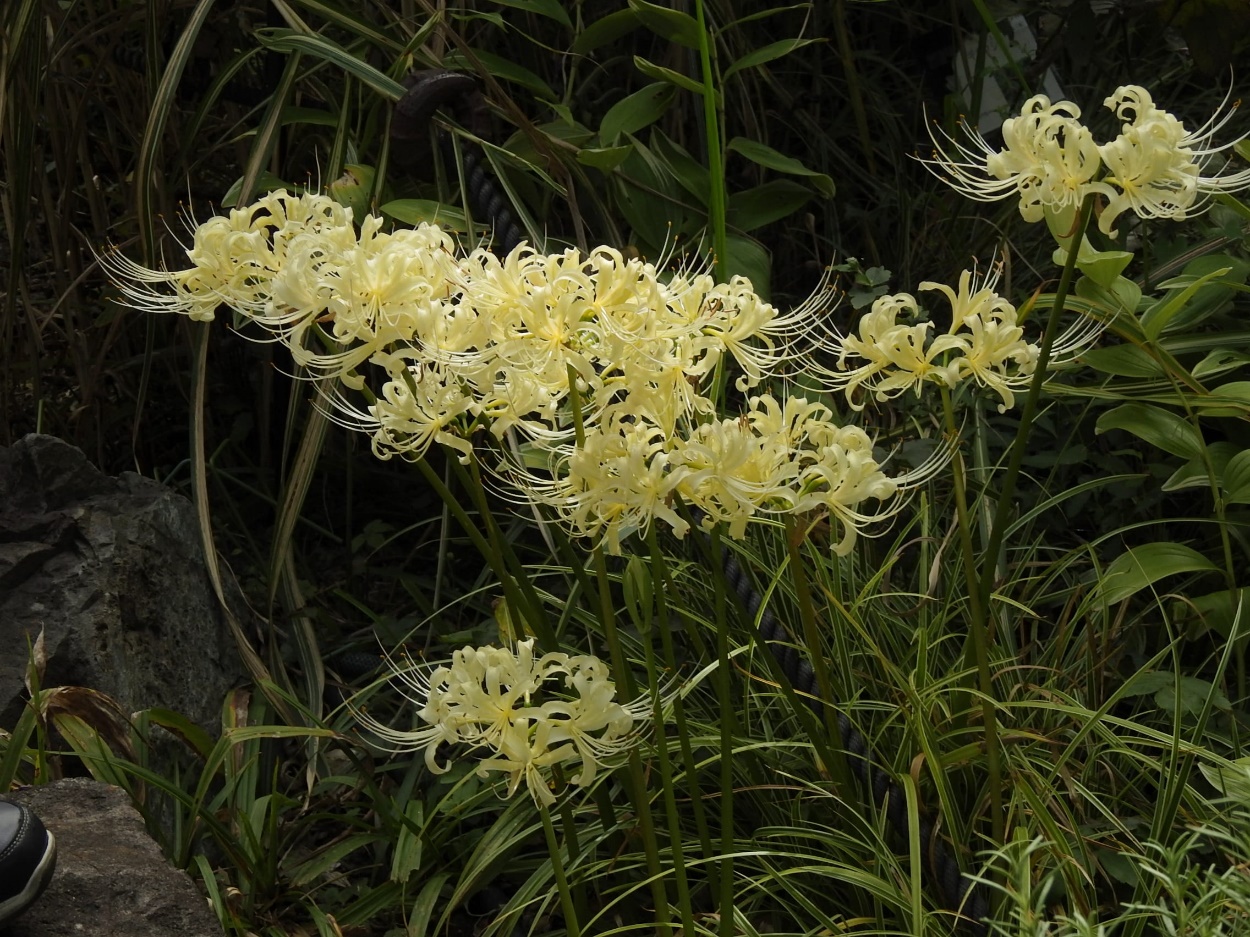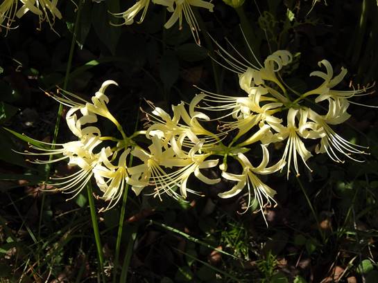 ヒガンバナ白(東谷山フルーツパーク温室南西生垣下)25/09/30P