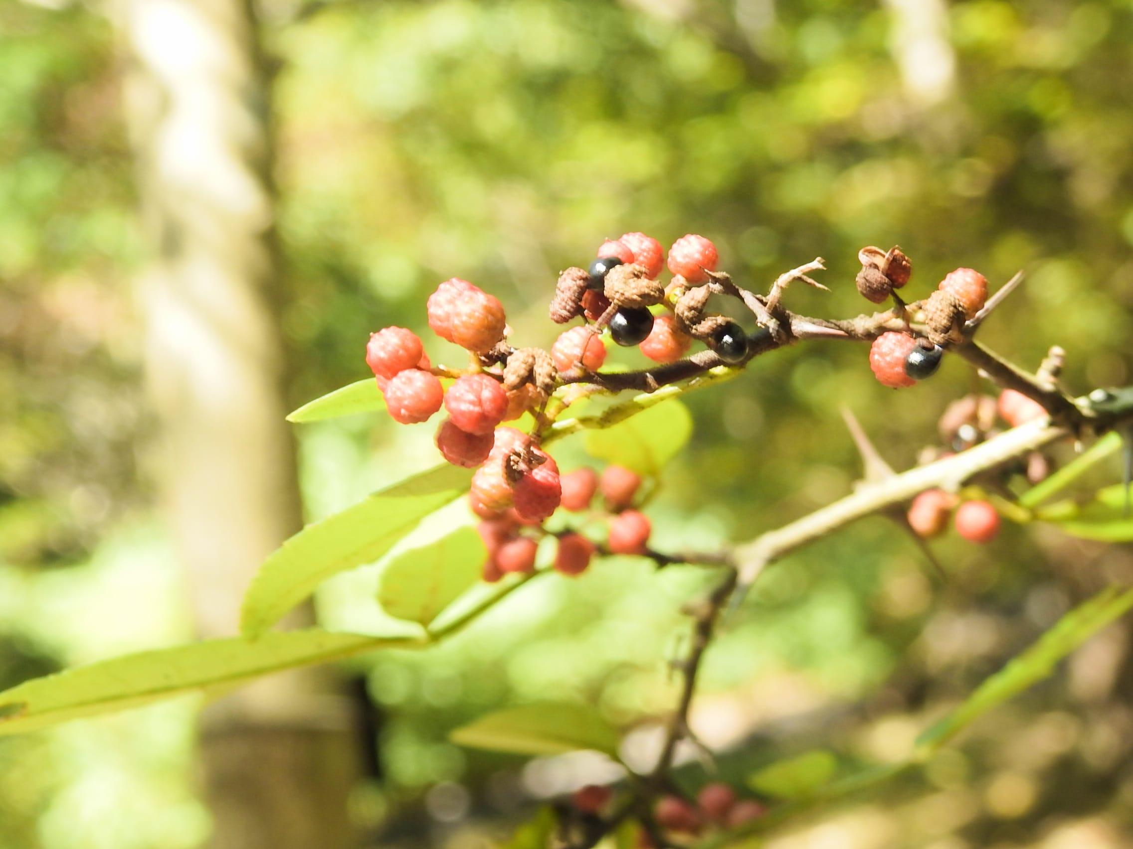 フユザンショウの弾けた実(名古屋市東山植物園みかん畑)25/10/17P