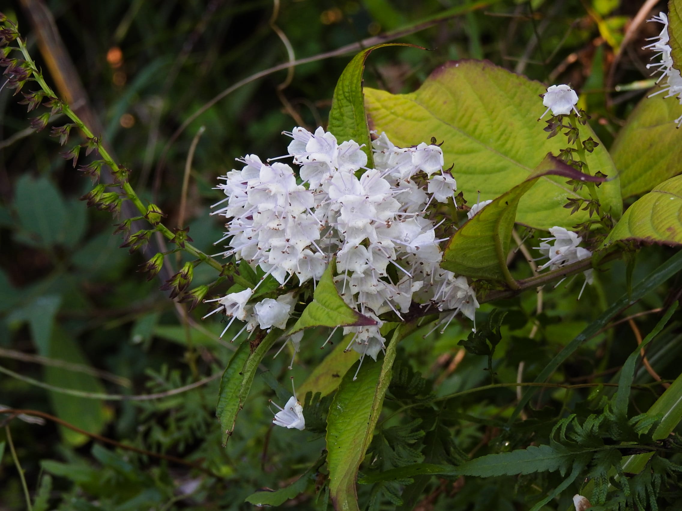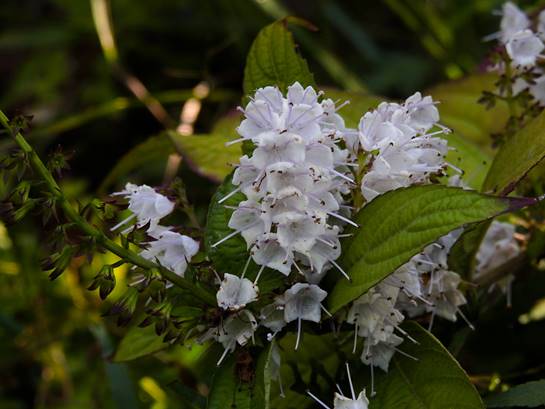 シモバシラ。上の花序の小花(東谷山フルーツパークロックガーデン)25/10/23