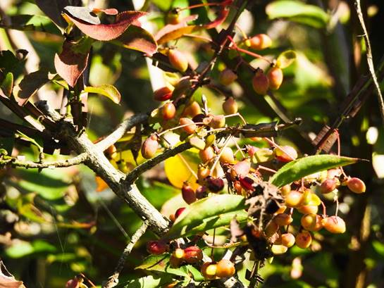 イイギリの実。左と同株(春日井市少年自然の家管理棟東脇)25/10/21P