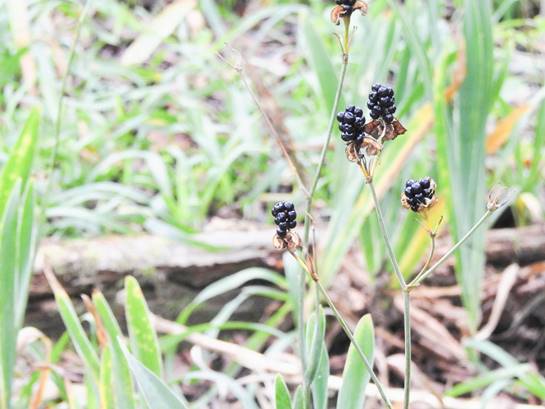 ヒオウギの弾けた実。ヌバタマ(春日井グリンピア万葉苑)25/10/21P