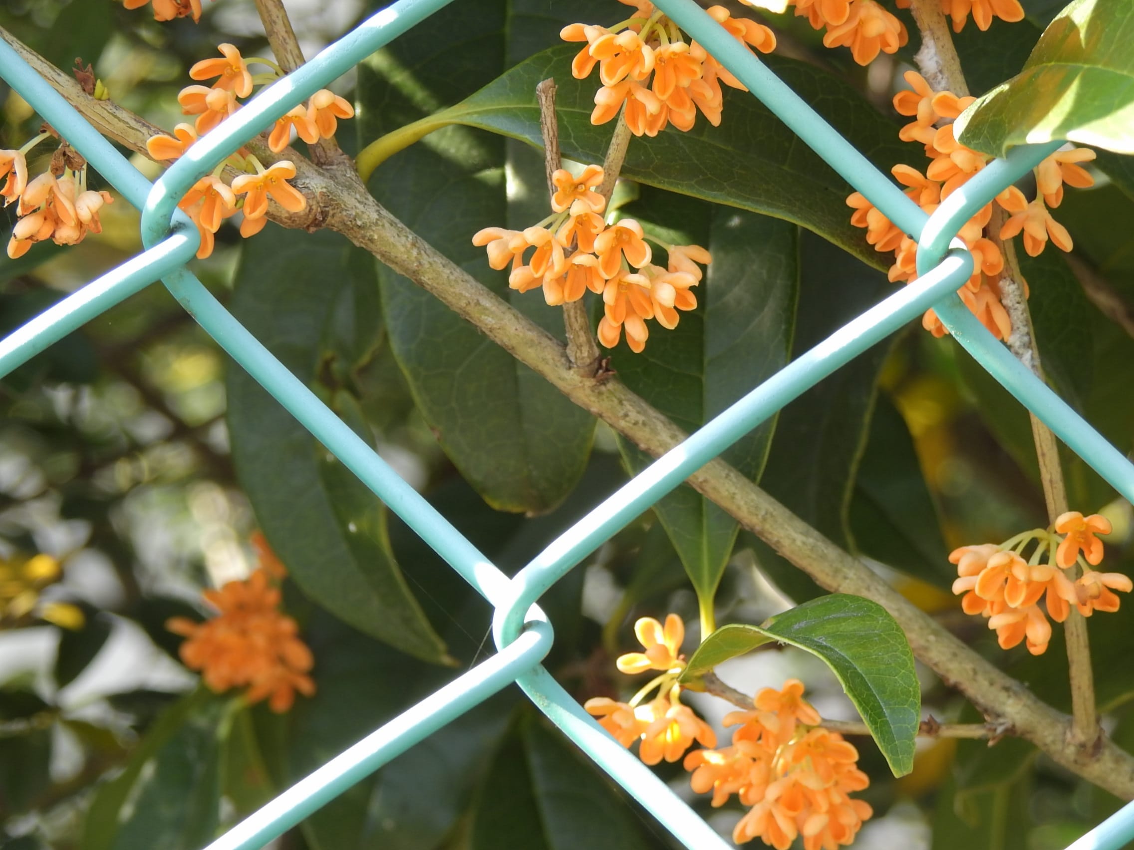キンモクセイの2番花(東谷山フルーツパーク北門北金網柵)25/11/07P