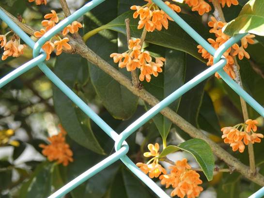 キンモクセイの2番花(東谷山フルーツパーク北門北金網柵)25/11/07