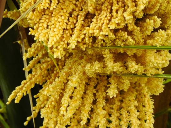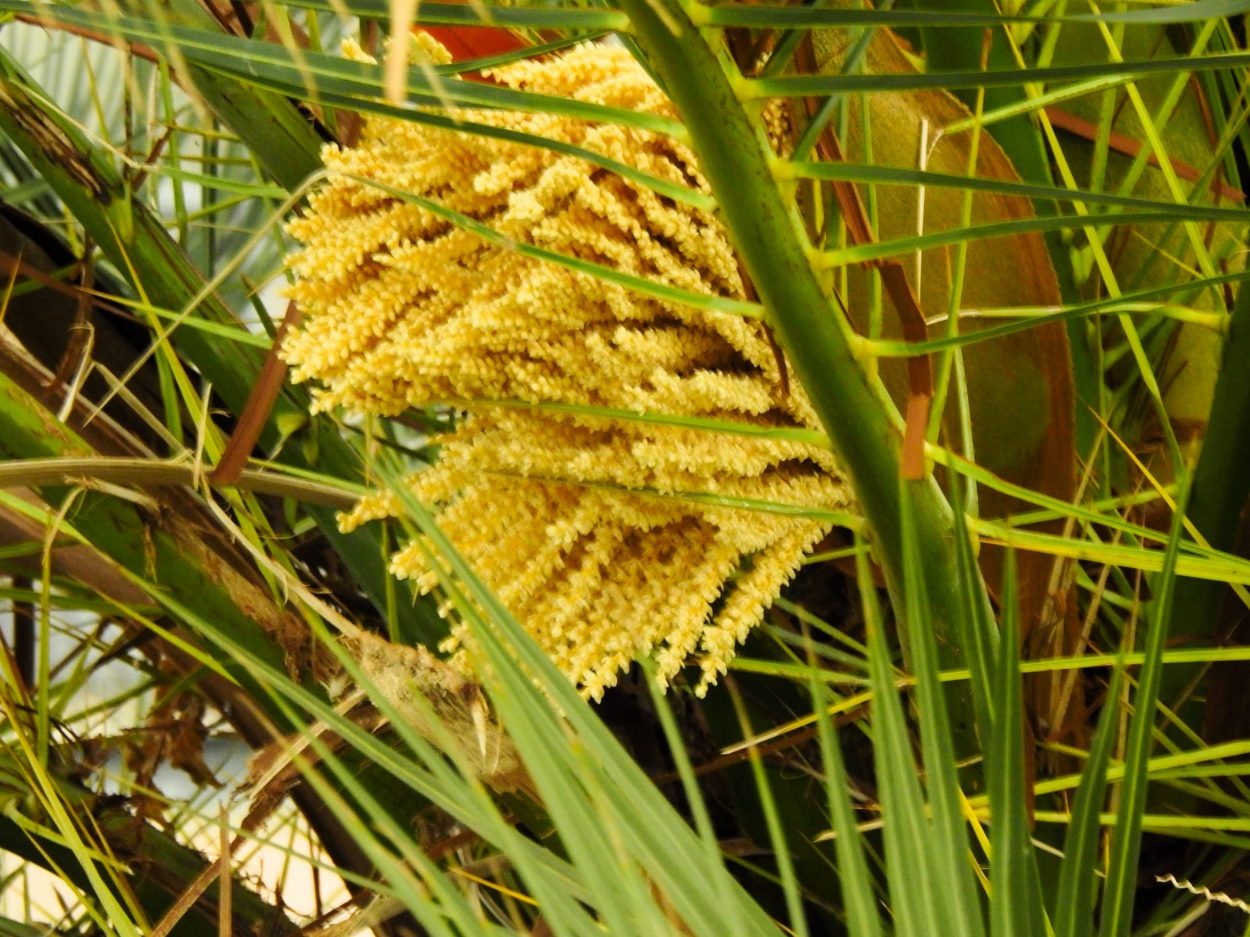ココスヤシ。左の花序の小花(春日井グリンピア温室3階)25/11/06P