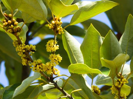 シロダモの雄花。左と同枝(春日井市高森台6丁目民家庭先)25/11/06P