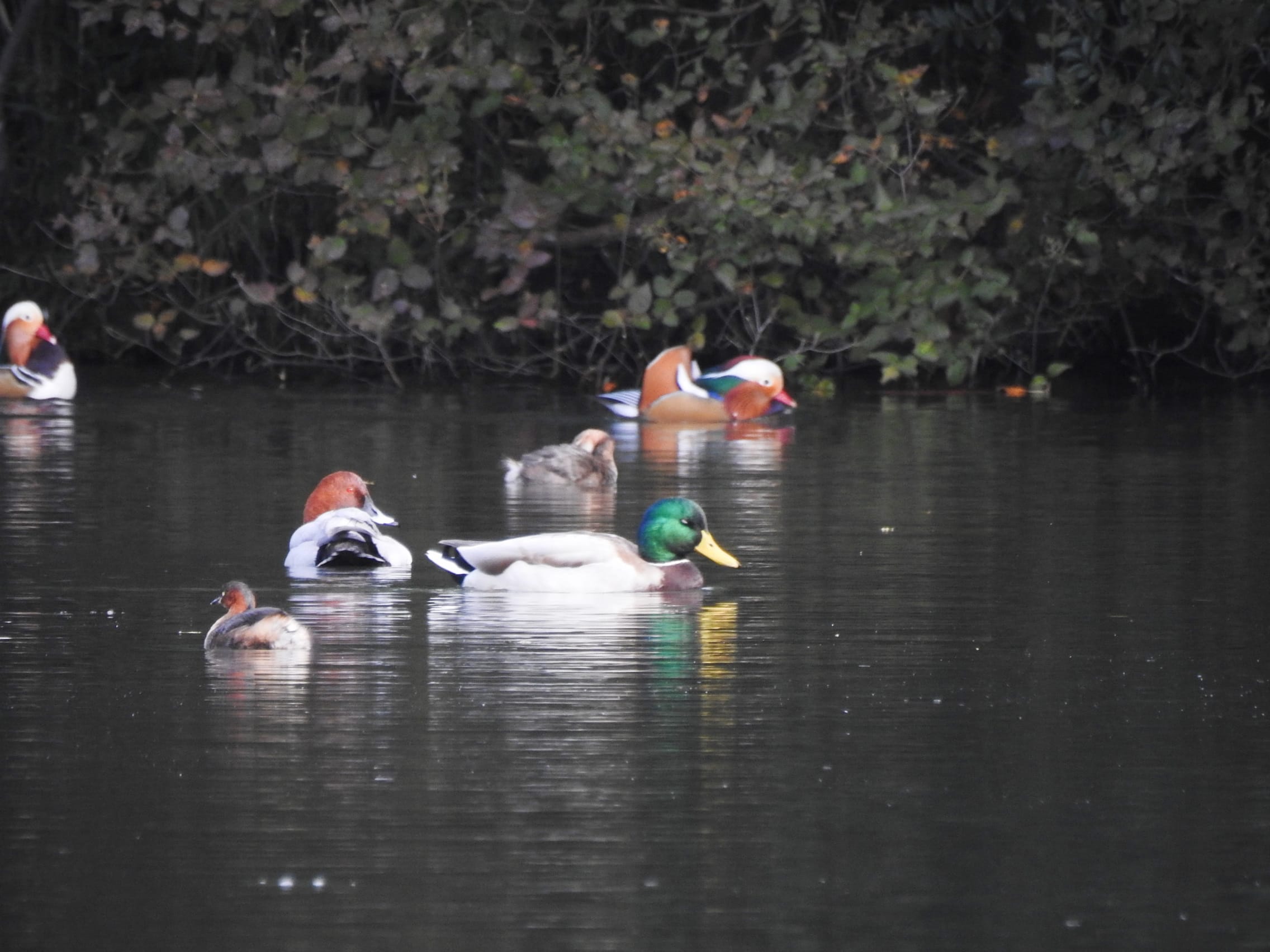 鳥:マガモ、オシドリ、ホシハジロ、カイツブリ(春日井市廻間町大谷北池)25/11/06P