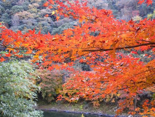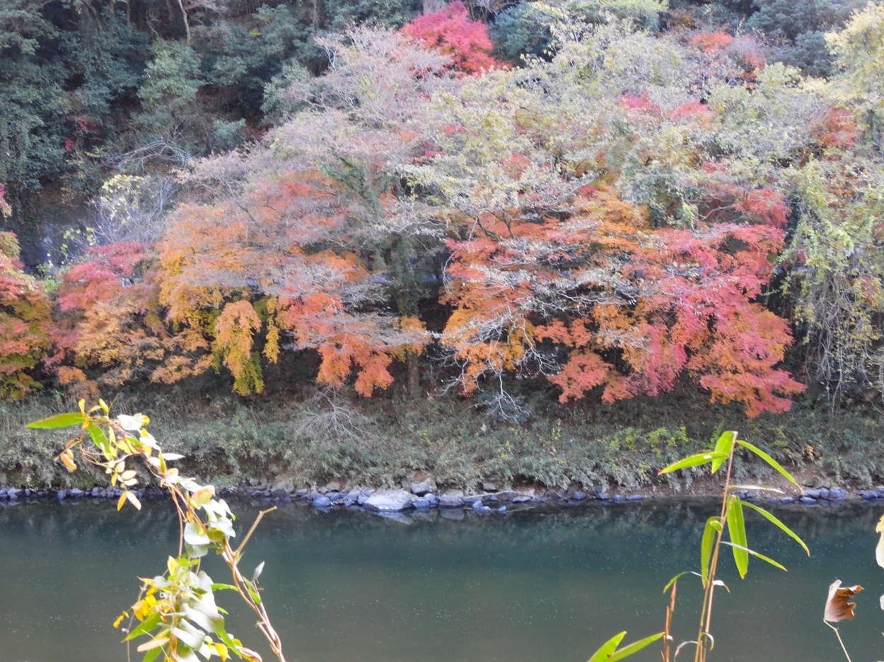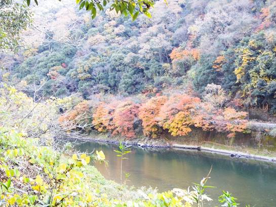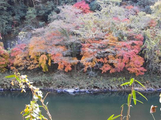 土岐川と対岸愛岐道路の紅葉(春日井市玉野町JR廃線跡)25/11/30P