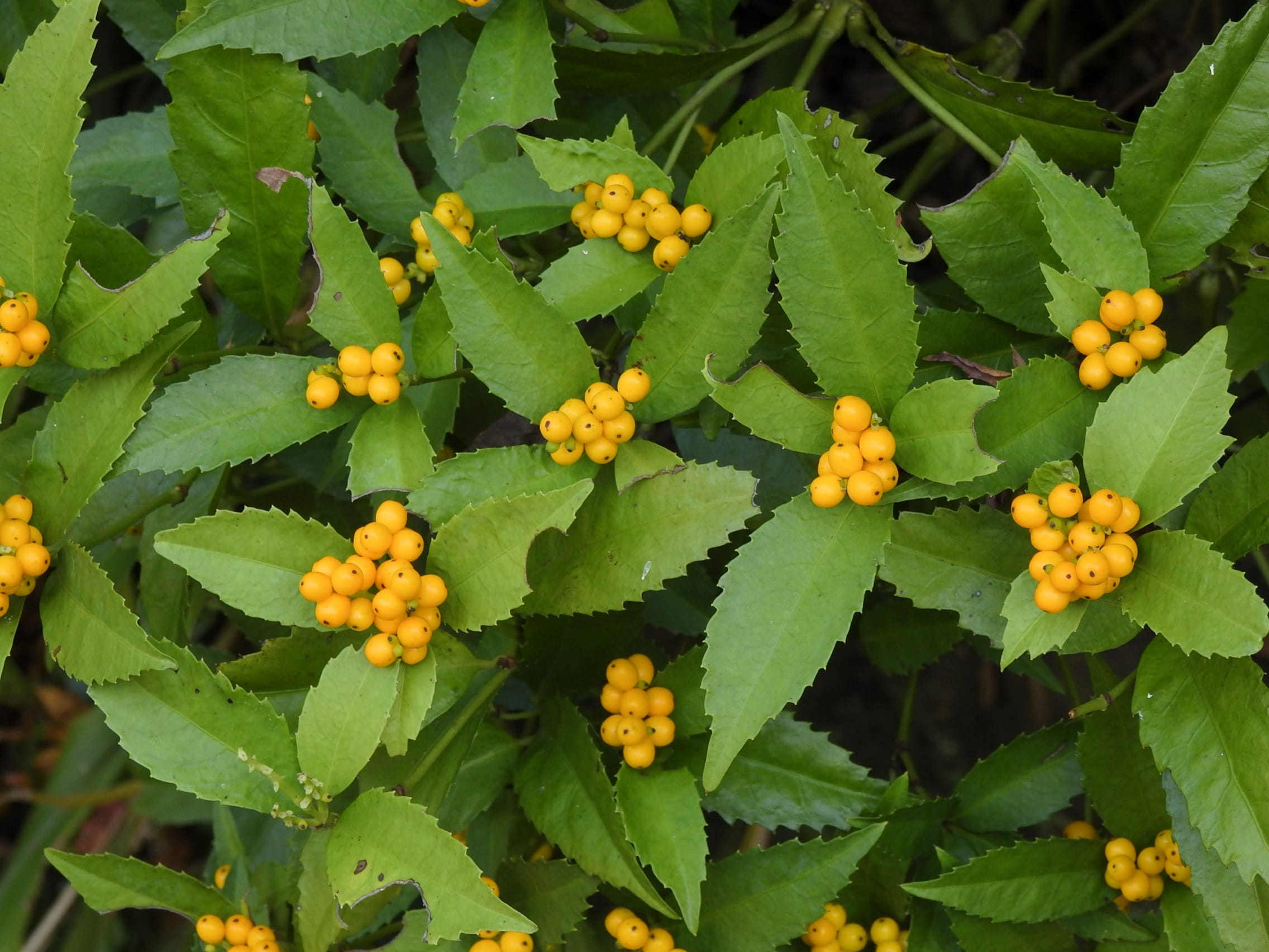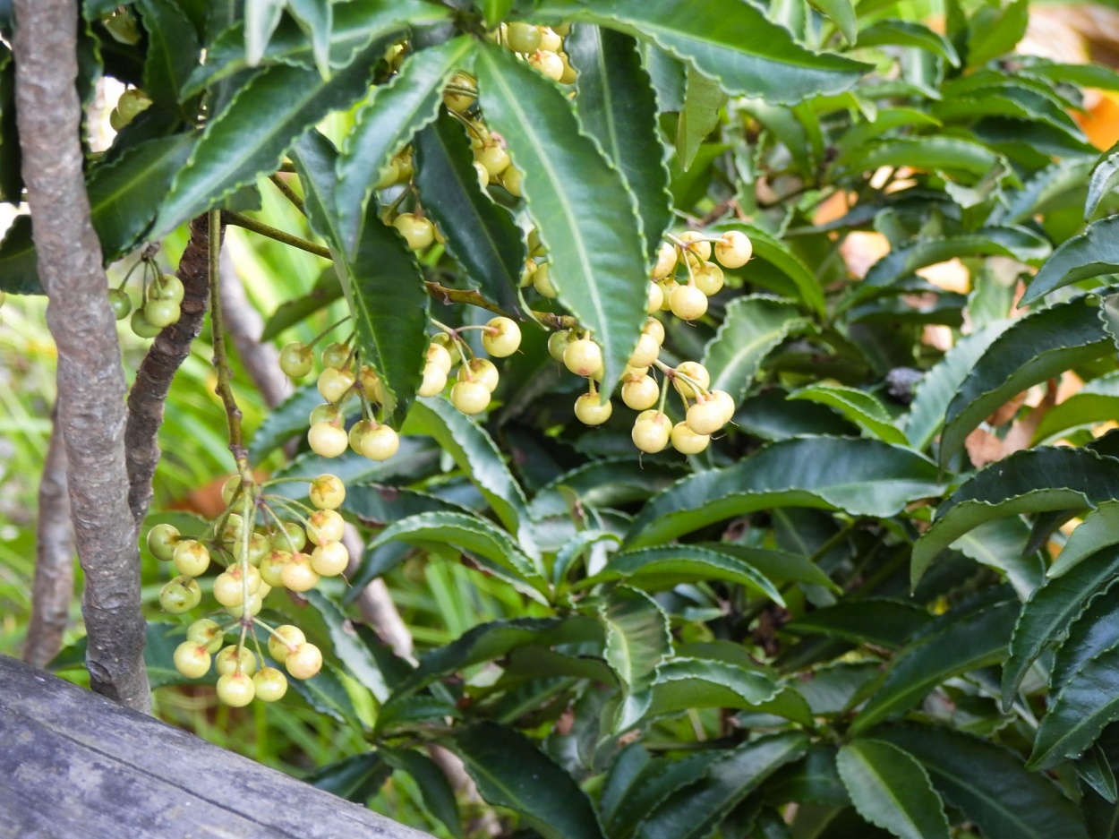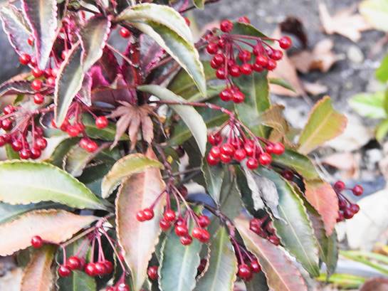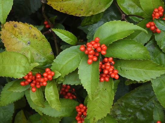キミノセンリョウの実(名古屋市東山植物園日本庭園南道路南傍)25/12/02P
