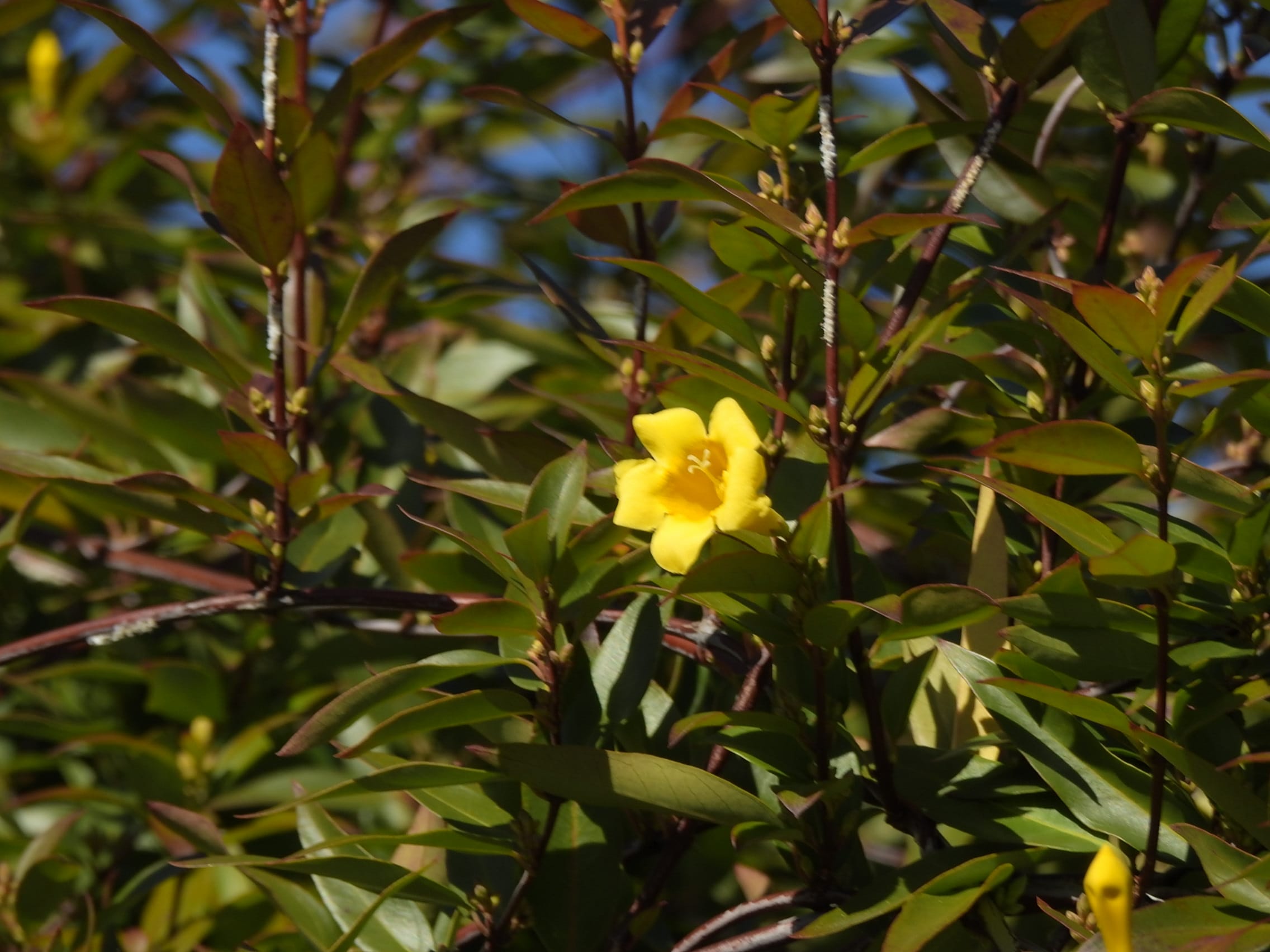 カロライナジャスミンの返り咲き(東谷山フルーツパーク花壇)25/12/06P