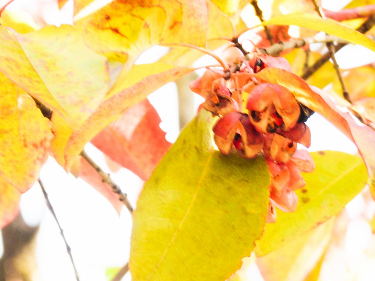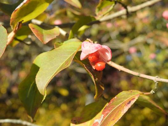 中国大花マユミの弾けた実(名古屋市東山植物園中国産植物園林)25/12/02P