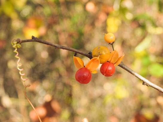 ツルウメモドキの弾けた実(春日井市少年自然の家管理棟東脇)25/12/09P