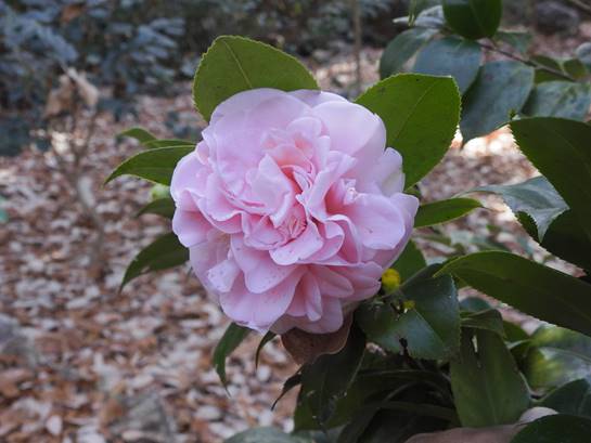 ツバキ:デビタント。花期3月〜4月(春日井グリンピア椿園)25/12/09P