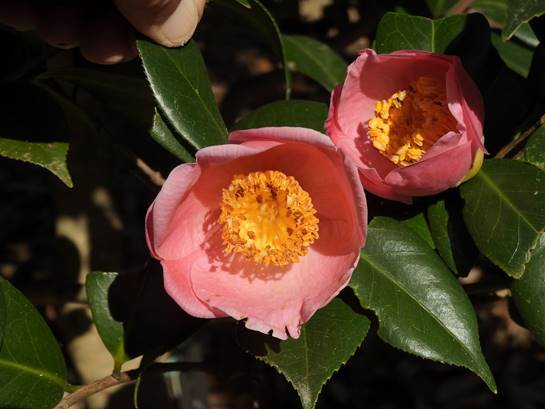 ツバキ:東方朔。花期11月〜3月(春日井グリンピア椿園)25/12/09P