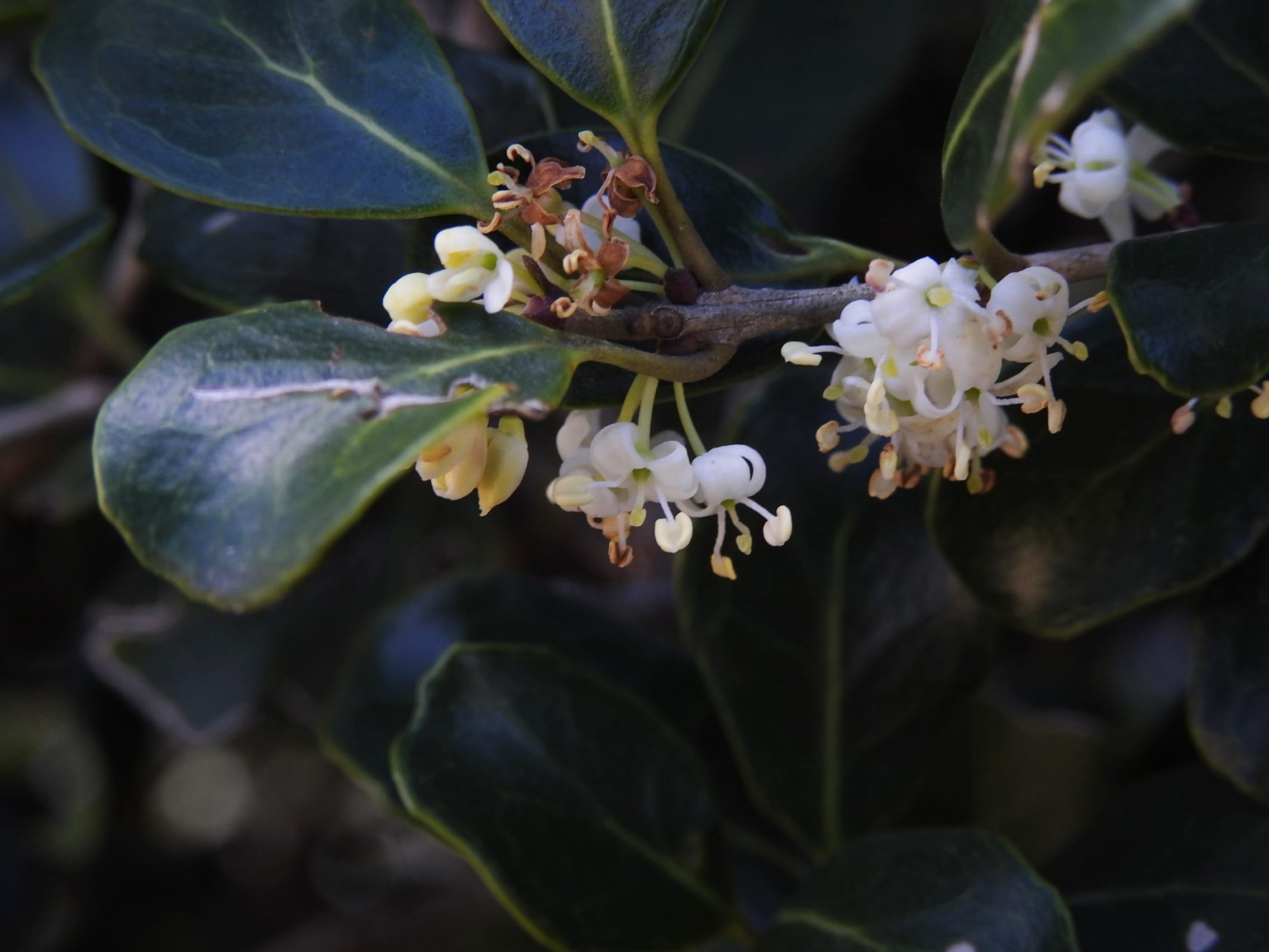 マルバヒイラギの雌花。左と同株(春日井グリンピア見本園)25/12/09P