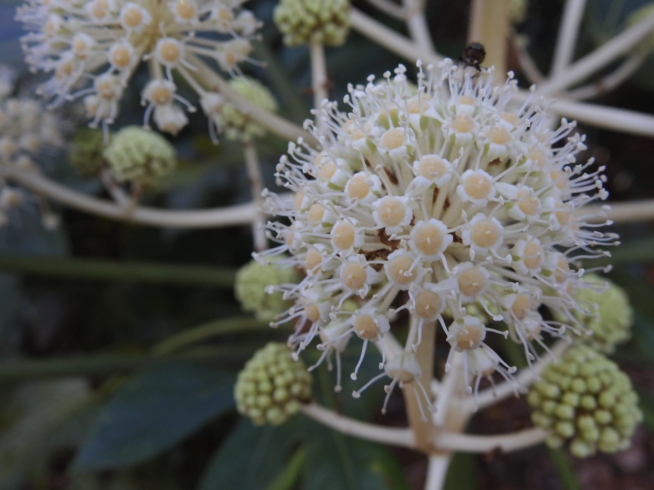 ヤツデ。上と同花序(春日井グリンピア外縁部駐車場西)25/12/09P