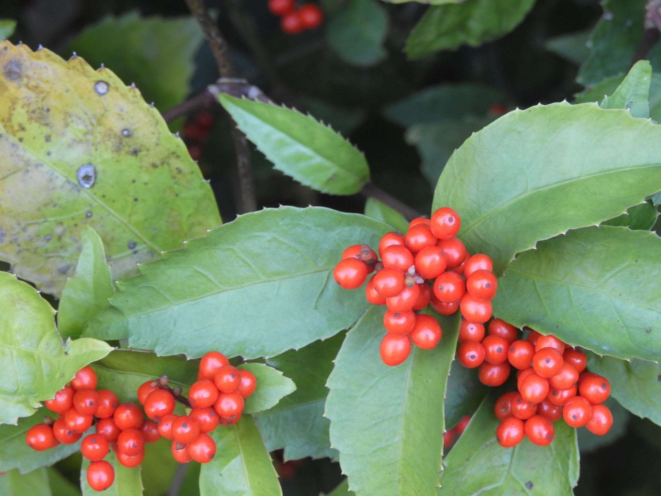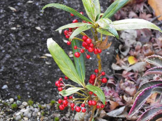 キミノセンリョウの実(名古屋市東山植物園日本庭園南道路南傍)25/12/16P