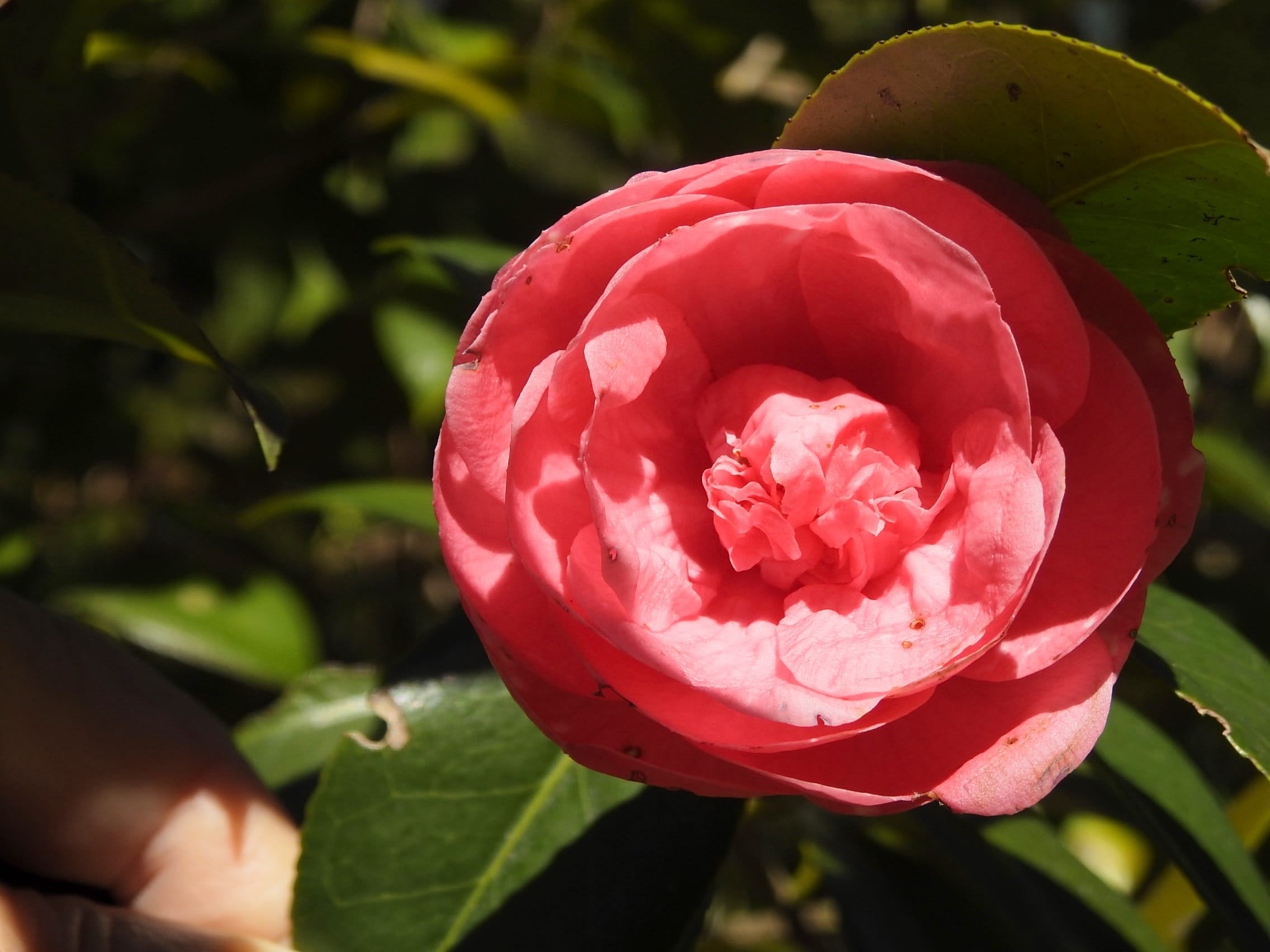 ツバキ:東天紅。花期3月〜5月(春日井グリンピア椿園)25/12/18P