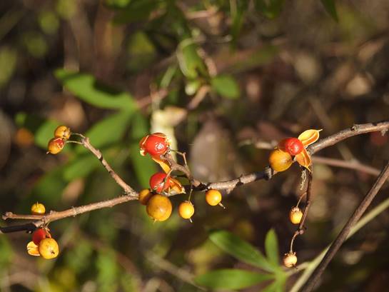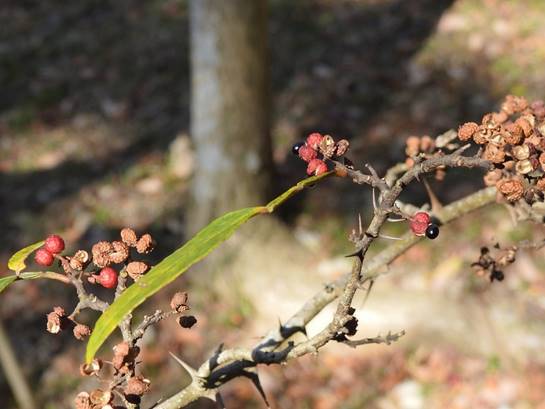 フユザンショウの弾けた実(名古屋市東山植物園みかん畑)25/12/16P