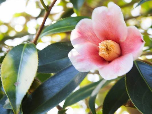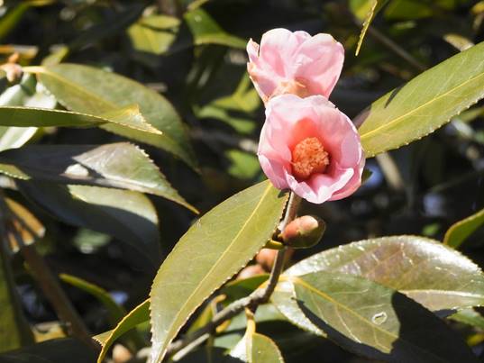 ツバキ:蝶舞子。花期2月〜4月(春日井グリンピア椿園)25/02/03P