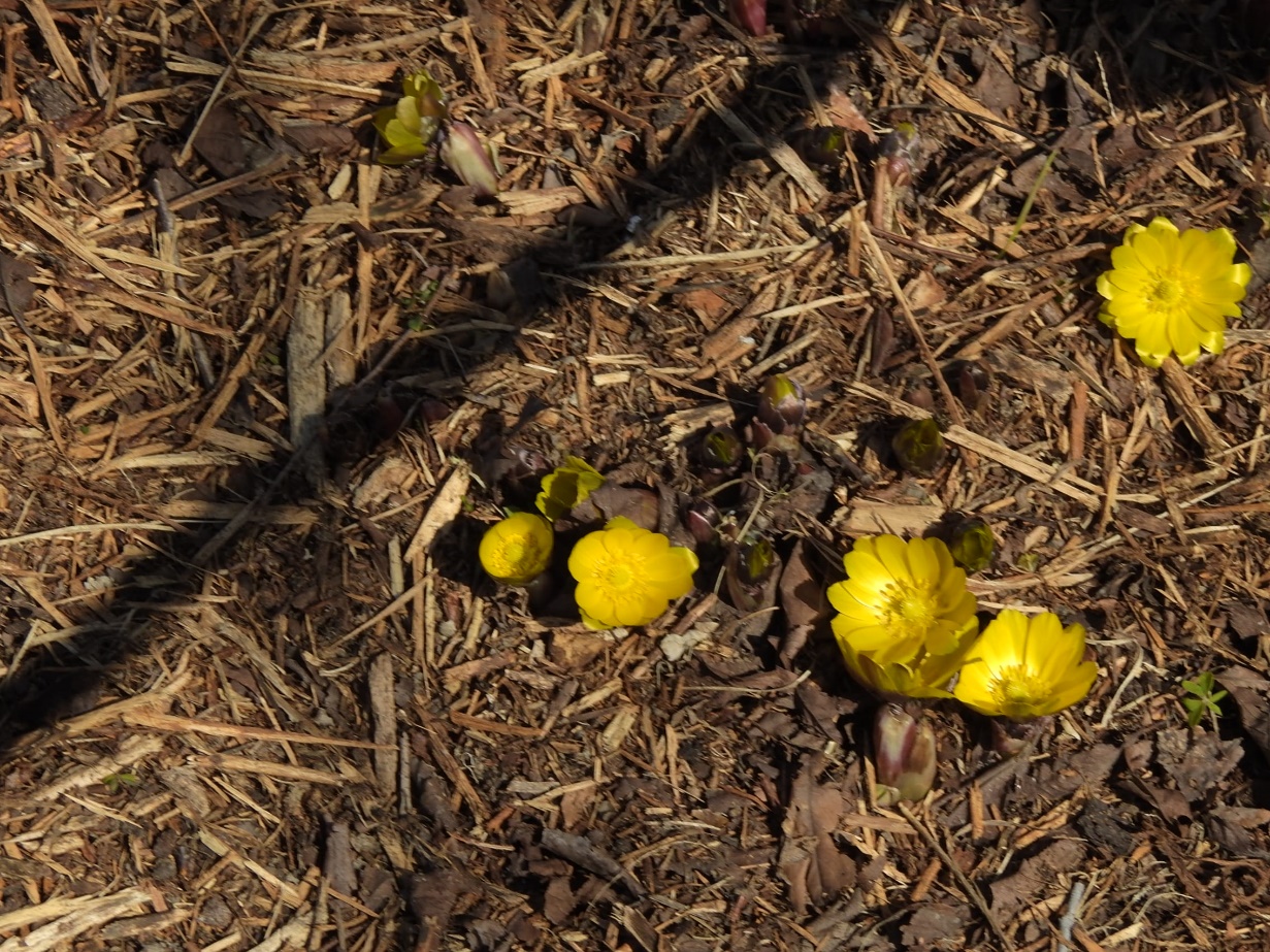 フクジュソウ。同左(東谷山フルーツパーク温室南)26/02/04P