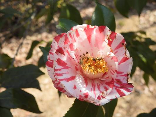 ツバキ:酒中花。花期3月〜4月(春日井グリンピア椿園)26/03/11P