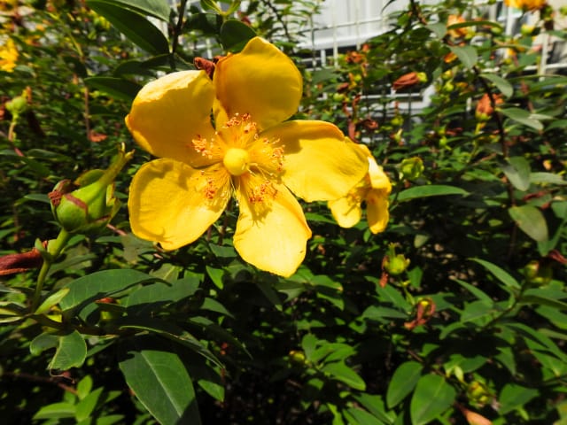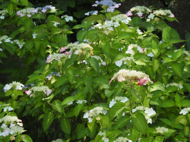 愛知県春日井市春日井グリンピア25/06/18 シロバナマンネングサ・ヒペリカム=カリシナム・コクチナシ・オカトラノオ・サンゴジュ・ムクロジ・モントブレチア・ヘメロカリス・ナツツバキ・コトネアスター・オオヤエクチナシ・アメリカデイゴ・ギンバイカ、などの開花、ヒメユリ・ササユリの残留開花、見頃のアジサイ類・ハナショウブ、などを期待して訪れました。 6月6日に引き続いての訪問ですが、この日も猛暑予報の為、往路復路共に、乗り合いバスを使用して訪れました。 シロバナマンネングサは、何時もの、本館南東脇石垣上で、2株が咲き出し見頃でした。 ヒペリカム=カリシナムも、本館東脇花壇北脇石垣で、1輪が、開花していました。 コクチナシは、カスケード東生垣で、開花し満開&見頃でした。 オカトラノオは、温室東石垣上、見本園東石垣上、で、各1株が開花し見頃でした。 見本園西のサンゴジュは、開花し満開&終盤でした。 アスレチック脇のムクロジは、雄花が咲き出し見頃でしたが、今年は、手の届く位置での開花は無く、接写は叶いませんでした。 動物ふれあい広場南東脇で、モントブレチアを探してみましたが、まだ蕾すら見当たりませんでした。 動物ふれあい広場南で、ヘメロカリスも咲き出していました。 ナツツバキは、何時もの、菖蒲池東の株が、強剪定の影響か、蕾も付けておらず、椿園に出向いて、開花している花を撮影してきました。ナツツバキ撮影で、この時期の椿園を訪れたのは、初めてです。 菖蒲池西生垣のコトネアスターは、花期を終えていました。 菖蒲池東生垣のオオヤエクチナシは、まだ蕾でした。 菖蒲池東のアメリカデイゴは、まだ蕾すら付けていませんでした。勇み足かもね。 ハーブ園のギンバイカ(マーテル)は、まだ蕾でした。 万葉苑のヒメユリは、1株2輪が残留開花しており、 見本園東石垣上のササユリは、新規株1輪が開花していました。 アジサイ類は、園の東脇で、ほぼ満開&見頃となっていましたが、 菖蒲池のハナショウブは、花後となった花が多く、見頃を疑いたくなる感じでした。 他には、 動物ふれあい広場南脇で、コバギボウシが咲き出し、見頃でした。 この時期、椿園を訪れた甲斐があって、椿園北脇の切り株に生えた、キノコ:ヒイロタケ?に、遭遇しました。 ハーブ園では、数株のクロホオズキがあり、10時半、花を閉じていました。 サカキは、この園には無い、と思っていましたが、万葉苑で落花を見付け、見上げると、サカキの花が残留開花していました。私のまだ知らない世界が残っているのですね。 何時もなら、菖蒲池を飛び交うトンボ類を追いかけたり、ハーブ園のクロホオズキの開花を眺めたりしながら、13時53分発のバスまで待つのですが、暑すぎてとてもその気が起こらず、コンビニおにぎり持参にも拘わらず、11時53分発のバスに乗り込み、帰宅の途についてしまいました。 |
