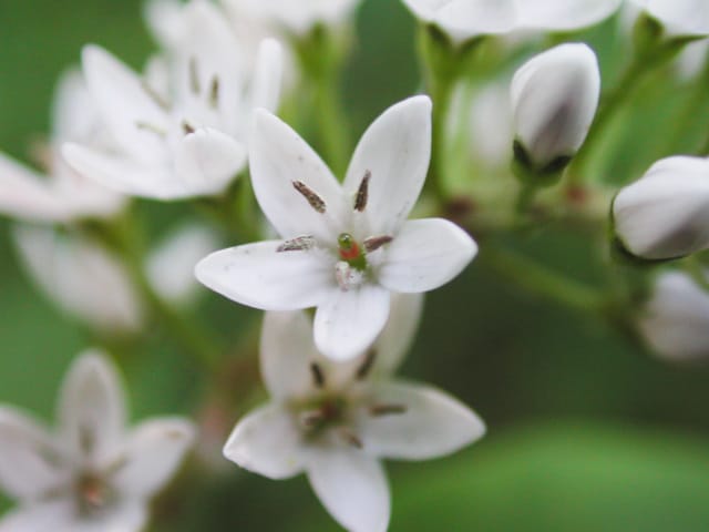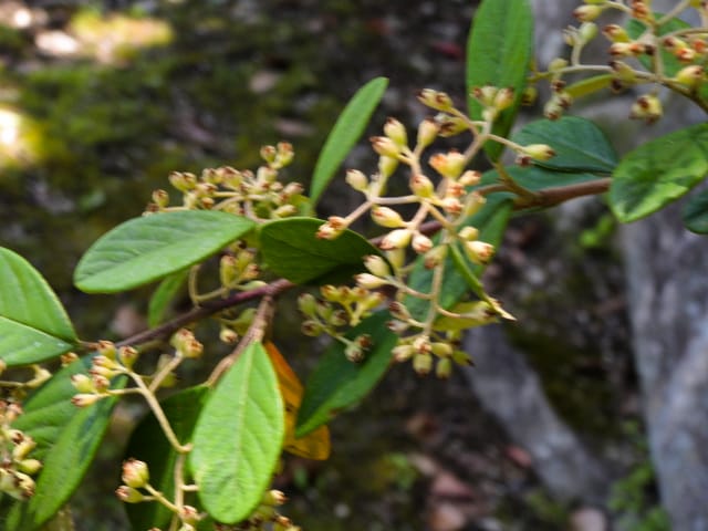 愛知県春日井市高森台外周林25/06/18 春日井グリンピアから乗車したバスを、「高森台4丁目」バス停で下車後、自宅への道すがら、シャシャンボの開花を期待して訪れました。6月13日に引き続いての訪問です。 シャシャンボは咲き出し、花序を接写して来ました。 道中、エゴノキの実、アカメガシワ雄花、が見頃で、ムラサキシキブが、咲き残っていました。 |