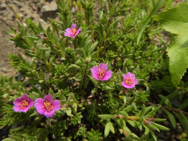 愛知県春日井市高蔵寺町車道脇25/06/20 このところ、梅雨の中休みで、連日、最高気温が30℃を超える日が続いている中、次週には梅雨空が戻り、連日雨模様の日となる、との天気予報。 この日を逃すと、暫く草花散策を行えない様子なので、東谷山フルーツパークとその周辺に出掛ける事としました。 名古屋市守山区東谷山フルーツパークの往路、 ヒメマツバボタン・ゼフィランサスなどの開花を期待して、JR高蔵寺駅から南に延びる、春日井市高蔵寺町の車道を南下していると、街路樹植え込みで繁茂し出したヒメマツバボタンが、1箇所で、10輪程開花し、見頃でした。 民家脇では、ゼフィランサスも1輪だけですが咲き出し、見頃でした。 |