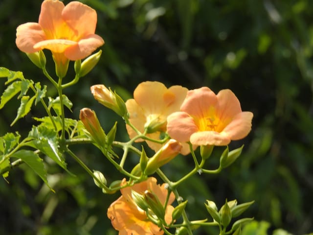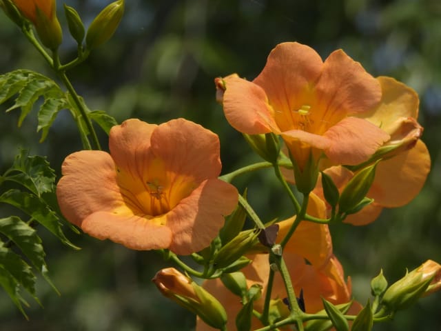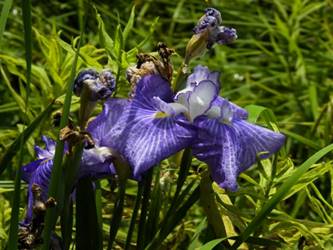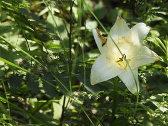 名古屋市守山区東谷山フルーツパーク25/06/20 ノウゼンカズラ・テッポウユリ・ヘメロカリス・ハンゲショウ・シャシャンボ・新規鉢植え品・黄覆輪キンマサキ、などの開花、見頃のオカトラノオ・ハナショウブ・ヒペリカム=カリシナム・スカシユリ・ネムノキなど、フェイジョア・キミノバンジロウ・アキチョウジなどの残留開花、ヤマユリの成長、ヤマモモ・ブラックベリーなどの稔った実、チョウトンボとの遭遇、などを期待して訪れました。6月12日に、引き続いての訪問です。 北門北脇のノウゼンカズラは、数輪が咲き出し、見頃でした。 ロックガーデンのテッポウユリ1輪は、開花していましたが、見頃を過ぎていました。 同じくロックガーデンのへメロカリスは、ノカンゾウに似た花が数輪、開花し出しました。 旧ハス池のハンゲショウは咲き出し、咲きたて見頃で、小花を接写して来ました。 南門付近のシャシャンボも咲き出していました。 鉢植え品は、本館南入り口で、黄花のコオニユリ風のユリ1株が、温室入り口でディエテス‘ビコロル’が、温室出口脇でデュランタが、各々、新規に咲き出していました。また、新規開花品ではありませんが、今まで「不明」としてきた、熱帯果樹育成室前の鉢植え品が「ポーチュラカ=ウェルデルマニー」であったことが判明しました。「ポーチュラカ云々」なんて、その鉢の元々の主だったろうと思っていた事が、間違っていました。 ビワ園西脇の黄覆輪キンマサキは、まだ蕾でした。 ロックガーデンのオカトラノオは、見頃を通り越して、終盤になった株もありました。 旧ハス池脇のハナショウブも終盤で、2輪の残留開花に留まりました。 花壇#2のヒペリカム=カリシナムは、2輪が全開していました。 花壇のスカシユリは満開になり、売店付近のネムノキは、満開&見頃でした。 温室南西生垣のフェイジョア、売店南西脇のキミノバンジロウは、終盤ながらも咲き残っていました。 四季の花園のアキチョウジは、3花序5輪程が咲き残り、嬉しいことに、アカバナアキチョウジも、1株4輪が開花していました。 同じく四季の花園のヤマユリは、1輪の蕾が少し大きくなっていました。 ロックガーデンなどのヤマモモは、色付き出し、落果し始めていました。 温室西生垣のブラックベリーは、数個が、黒く稔り出していました。 日本庭園池のチョウトンボですが、10時過ぎに訪れた際には姿が見えず、「早すぎるのかも」と思いながら、昼食後、12時25分に、「帰宅間前に再確認」と思い、再度見に行くと、交尾したチョウトンボが現れて、池脇の草の葉っぱに留まりました。撮影しようとすると、すぐに分離し、雌は湖面での産卵に、雄はその護衛に、飛び交い、私のコンデジカメラでは、追いかけて見たものの、撮影不能でした。約10分間、再度交尾し、すぐに分離し、産卵行動を、繰り返した後、私が、時間切れで、その場を離れようとすると、雌が飛び去り、雄は、池端の草の葉っぱ上で、暫し静止し、シャッターチャンスが訪れました。 雌のチョウトンボは、残念ながら撮影に至りませんでしたが、初遭遇で、雄より黄色っぽかったように見えました。 |