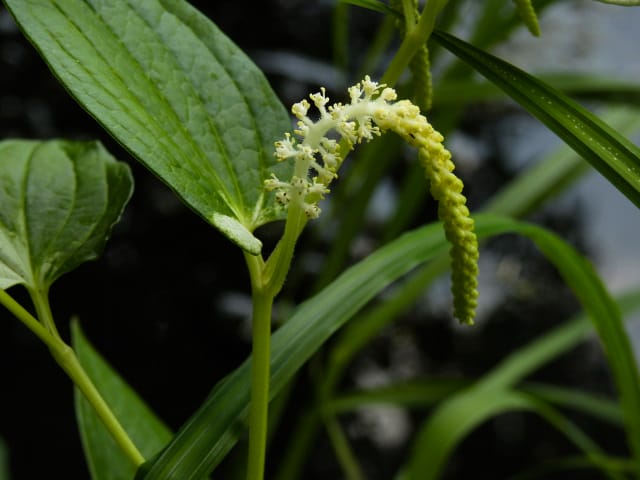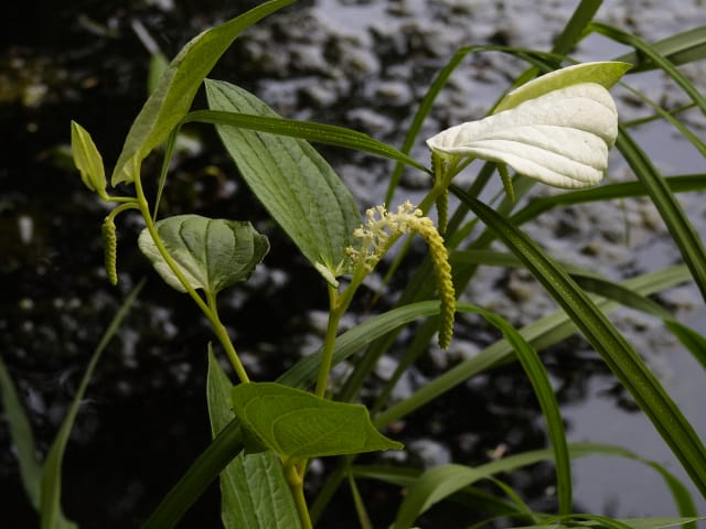 名古屋市守山区上志段味字白鳥25/06/20 東谷山フルーツパークへの往路復路、 ポンテデリアの開花、コジキイチゴの実の残留、などを期待して、6月12日に引き続いて訪れた、守山区上志段味字白鳥では、 車道東脇で、アレチハナガサが開花し見頃となっており、 畑#1脇に置かれた水鉢のハスが咲き出し、 畑#1南脇の林では、アカメガシワの雄花が見頃となっていました。 畑#2西脇のコジキイチゴの実は、多くの蒼い実に混じって、黄色く稔った実が綺麗で、 畑#2脇では、クズなどが大繁茂する中、ギボウシが蕾を付けており、 民家脇の白花キョウチクトウとマサキが満開になっていました。 金網柵の場所では、マサキは蕾のままでしたが、ルリヤナギが咲き残り、 民家脇鉢植えの、ハナショウブが数輪残留し、ポンテデリアが数花序開花し、見頃でした。 水路脇民家のリュウキュウアサガオは、開花数が10輪以上に増えていました。 |