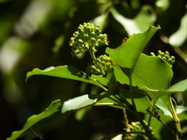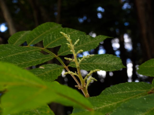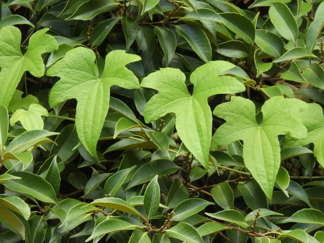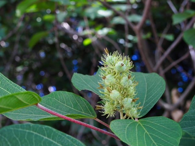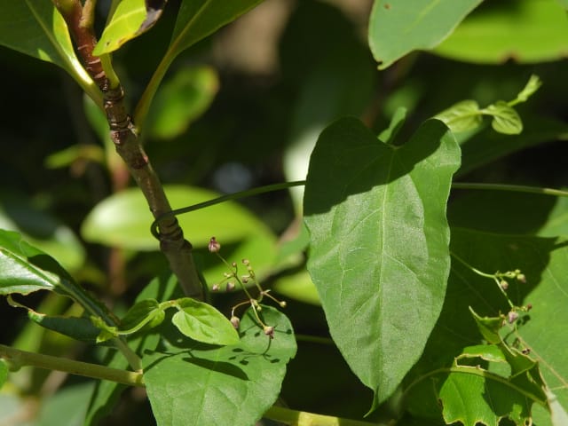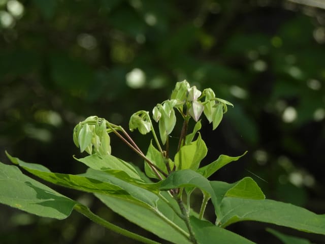 愛知県春日井市「高森台4丁目」バス停付近外周林25/07/20 コカモメヅルの開花を期待して立ち寄ってみました。7月12日に引き続いての訪問です。 コカモメヅルはまだ蕾でしたが、アオツヅラフジの雄花が咲き出しており、ヌルデが花芽を付け、アカメガシワの雄花が残留し、雌花の花後も見つかりました。 |